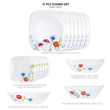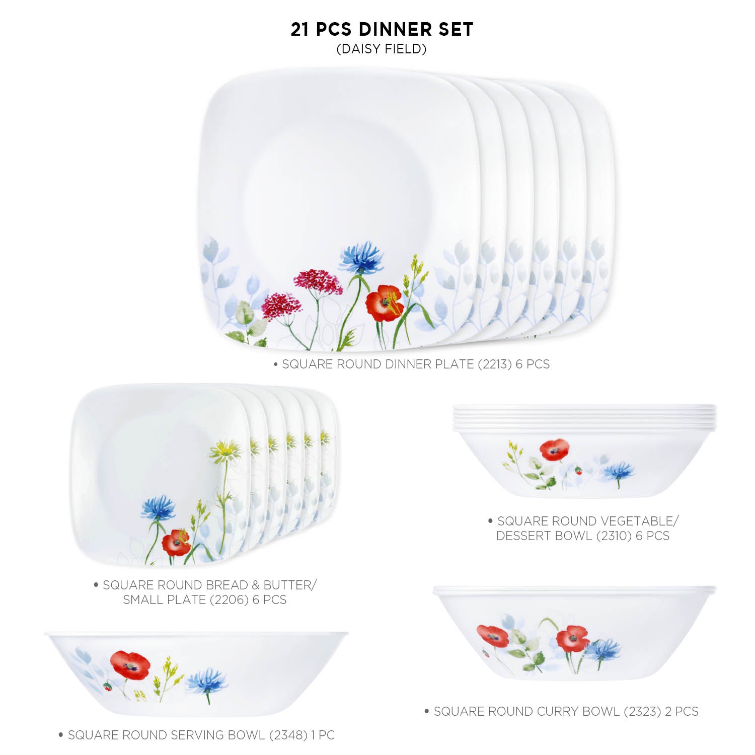 Corelle Asia Square Round Daisy Field 21 Pcs Dinner Set