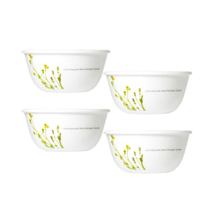 CORELLE Glass Vegetable Bowl Asia Collection European Herbs 177 ml Katori Pack of 4 (Pack of 4, White)