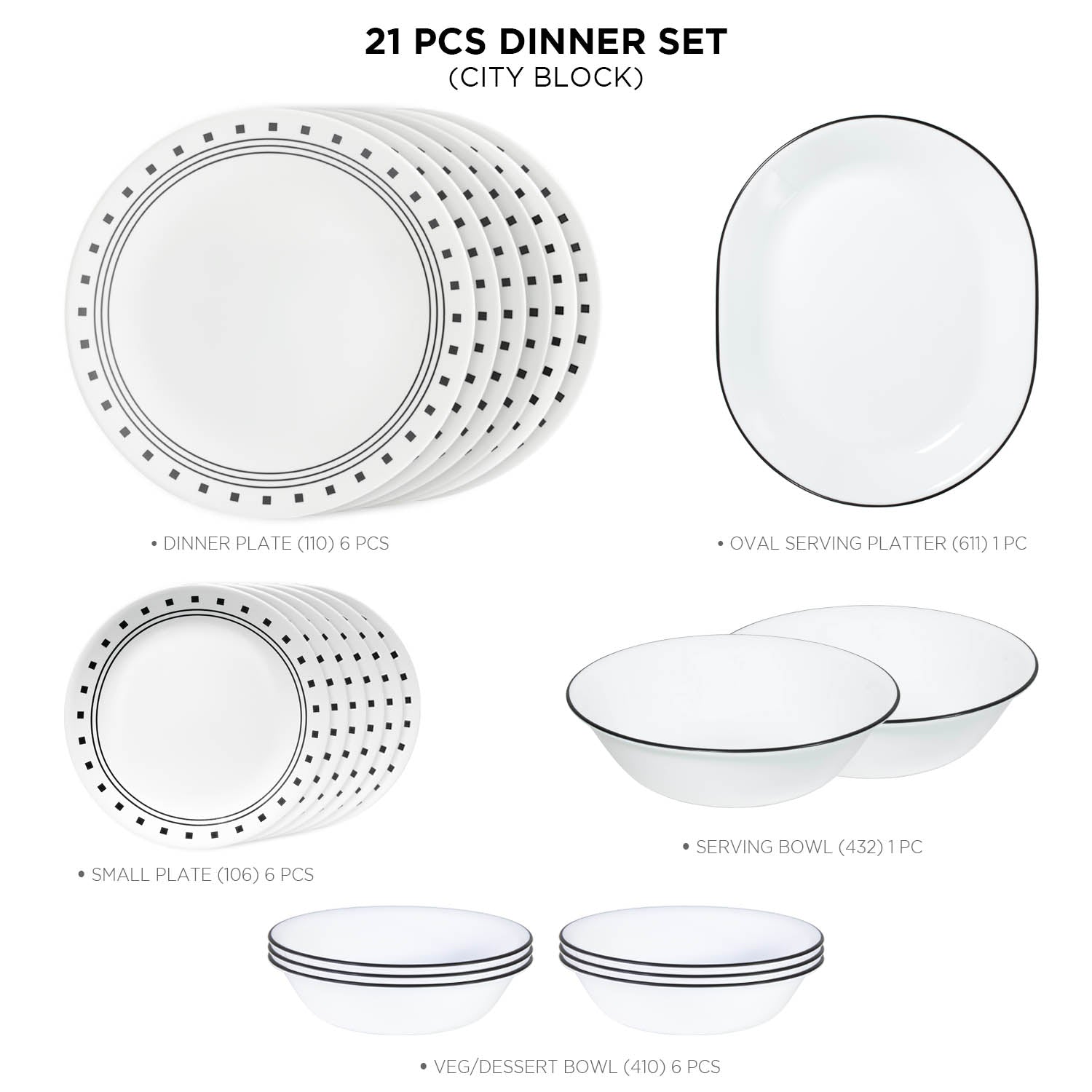 - Package Contents: 6xDinner Plate,6xSmall Plate,6xVDB(Veg./Dessert Bowl),1xCurry Bowl,1xServing,1xOSP(Oval Serving Platter)