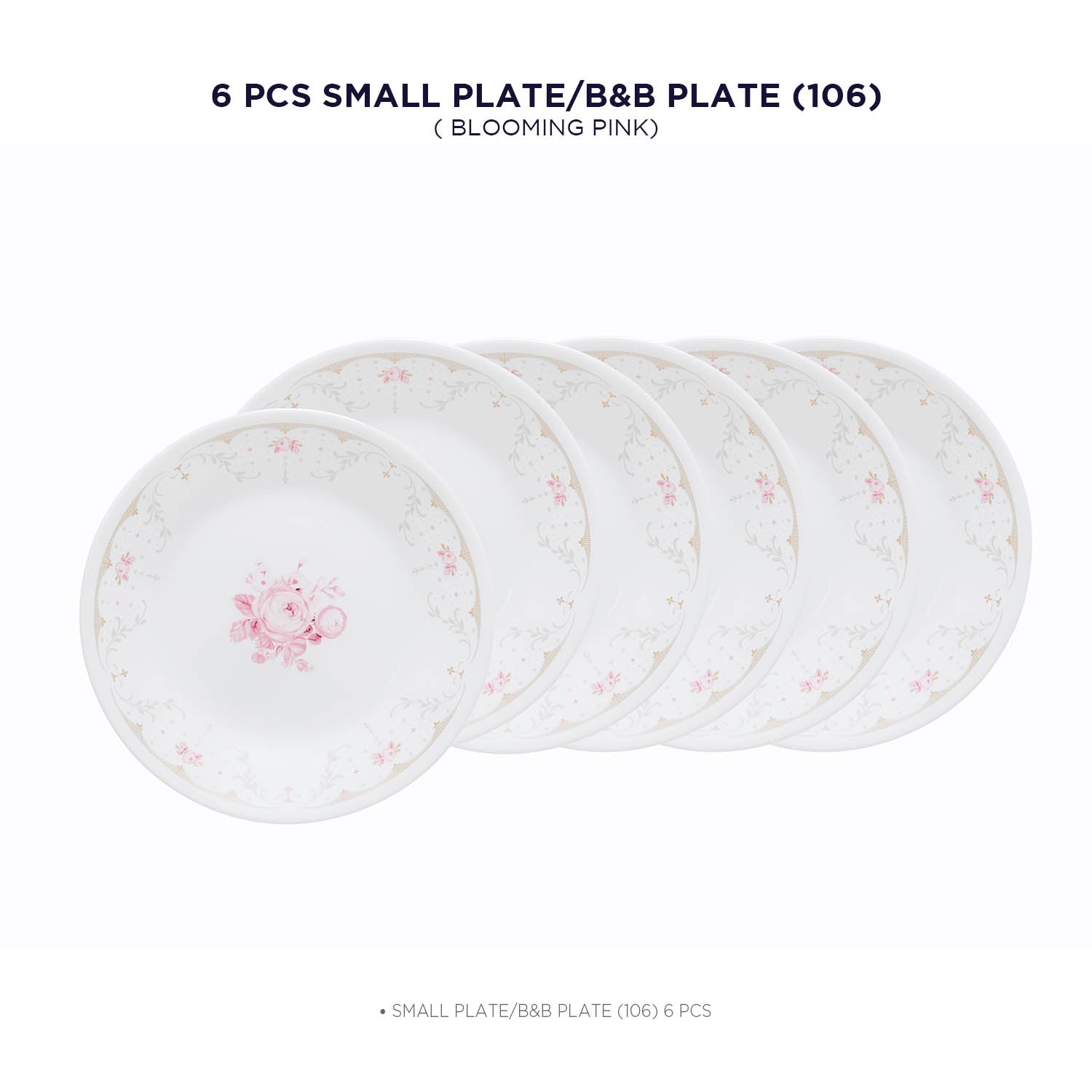 Corelle Asia Collection Gold Series Blooming Pink 17 cm Small Plate Pack Of 6