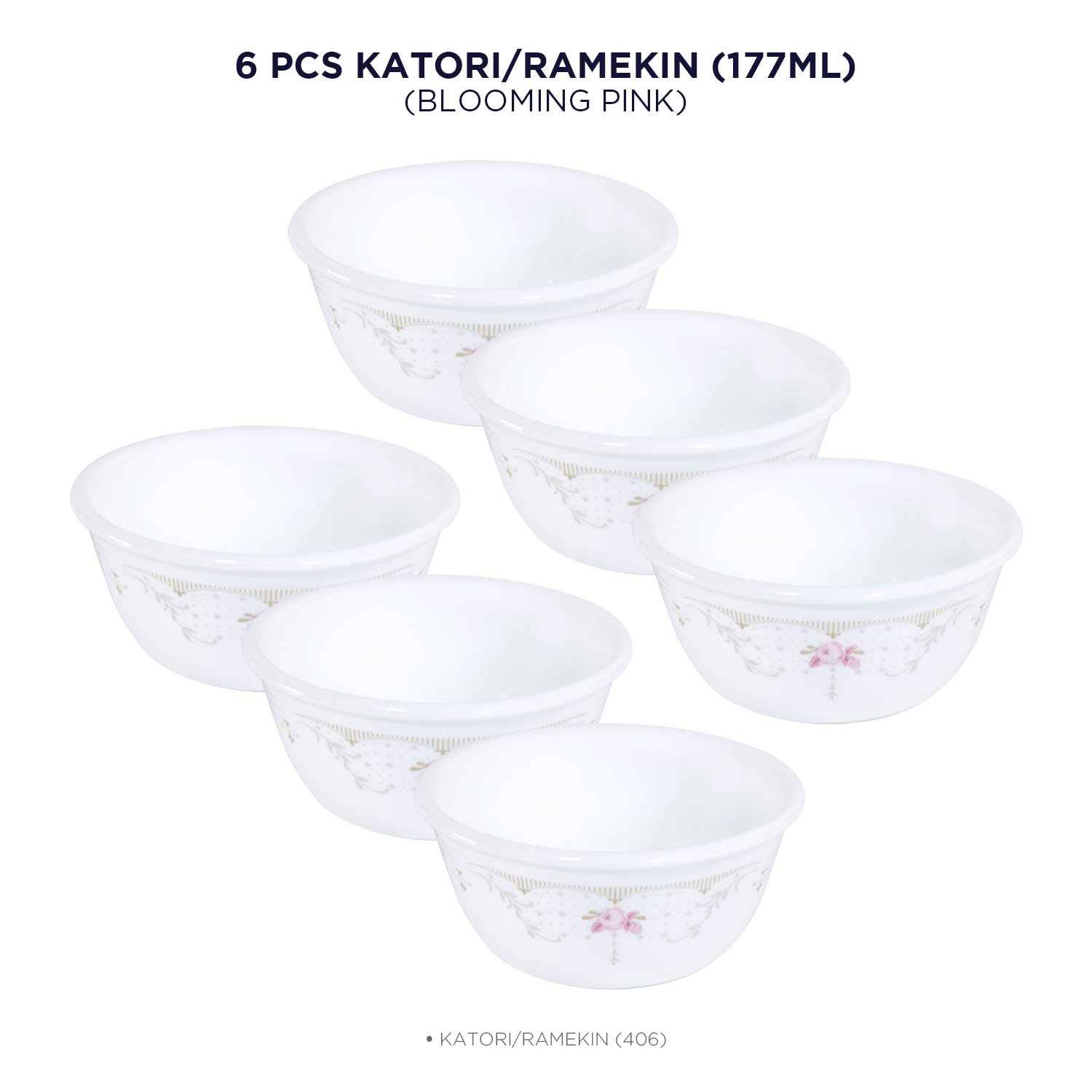 Corelle Asia Collection Gold Series Blooming Pink 177 ml Katori Pack Of 6