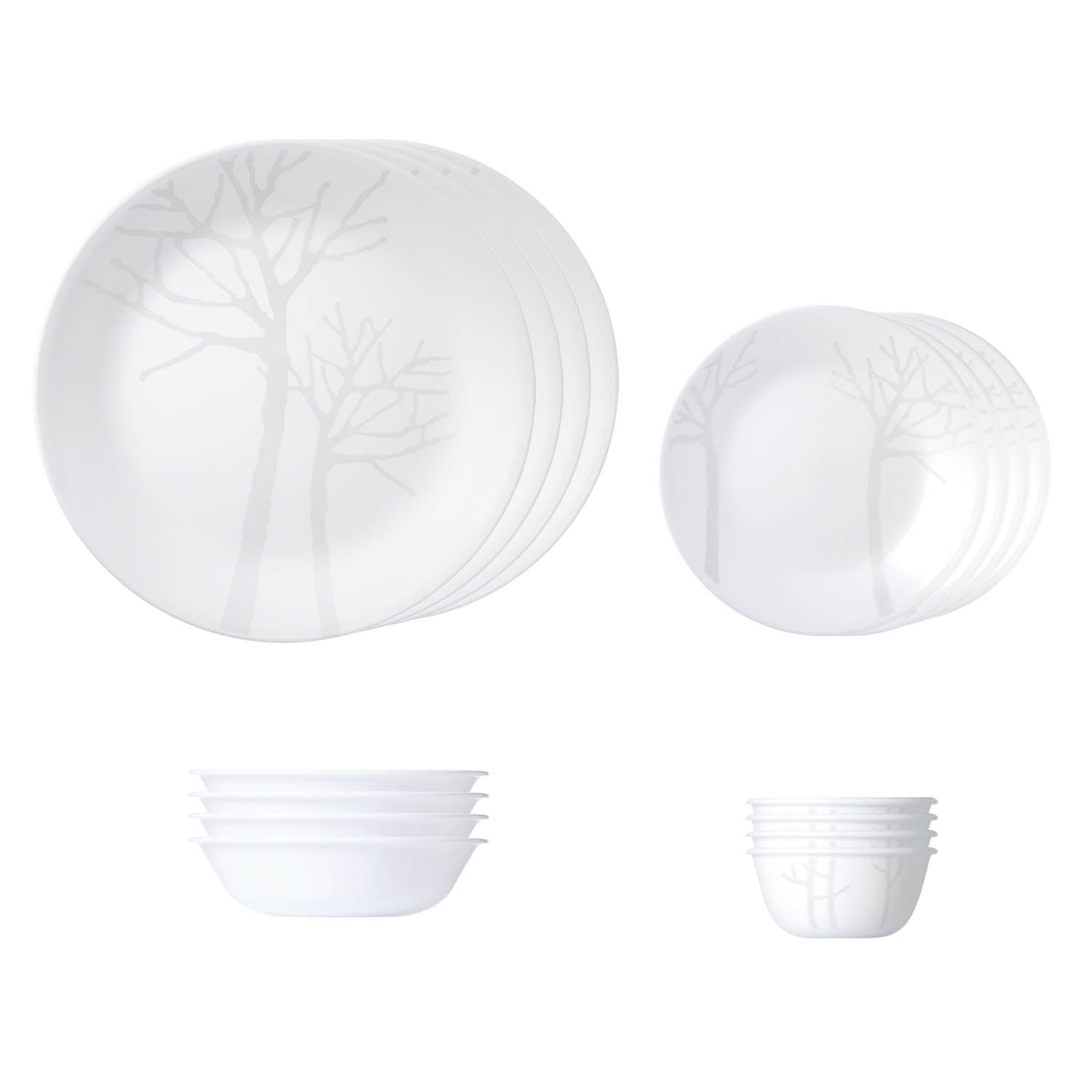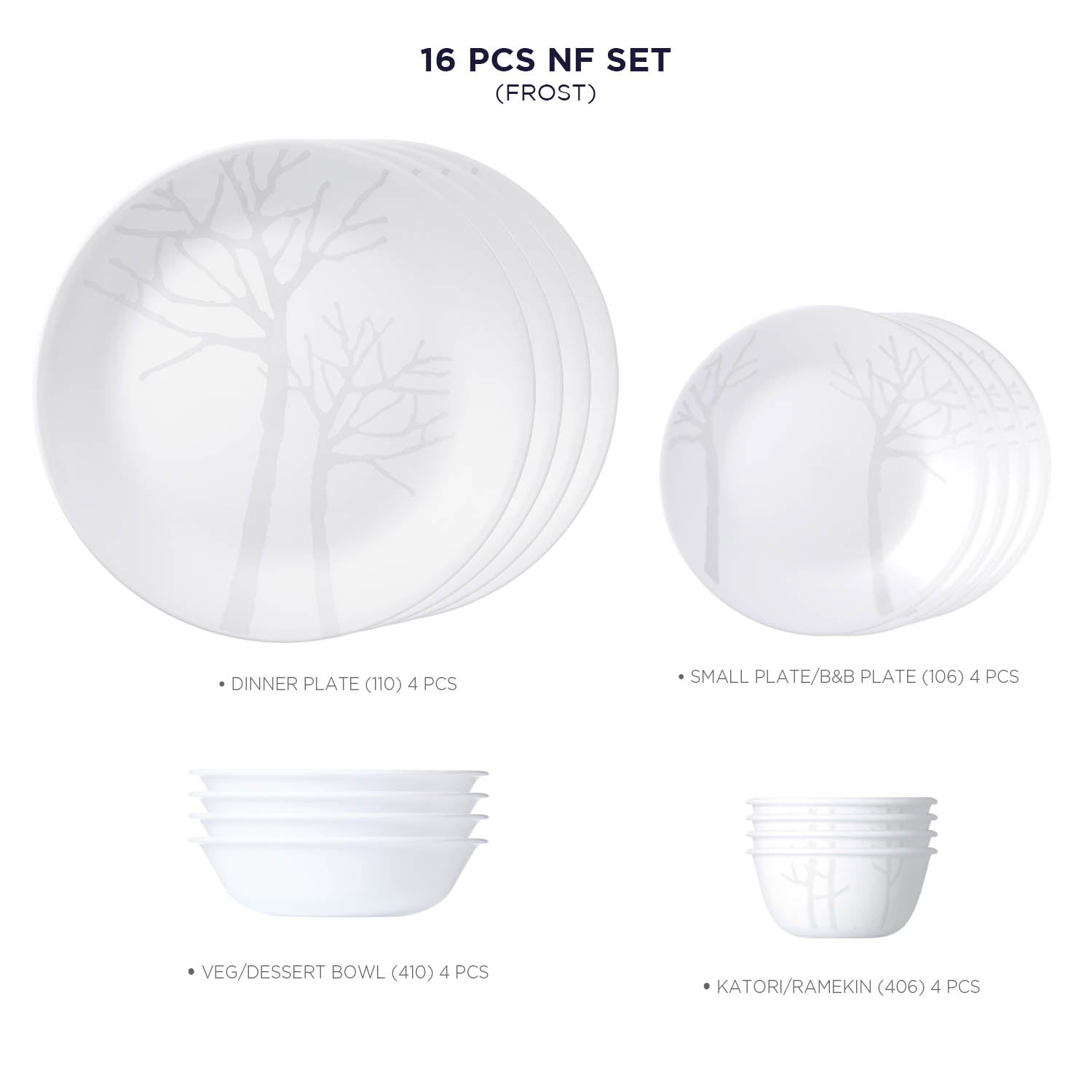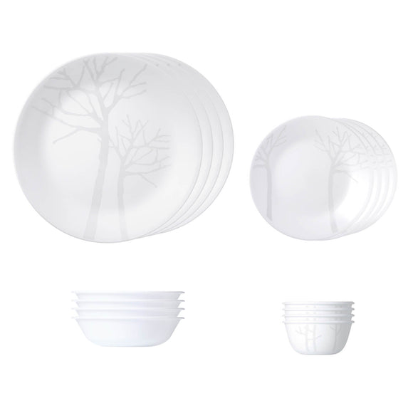 Corelle Asia Collection Gold Series Frost 16 Pcs Nuclear Family Set (Pack of 16) 4 26cm Dinner Plates, 4 17cm Small Plates, 296ml Dessert Bowl & 177ml Katori