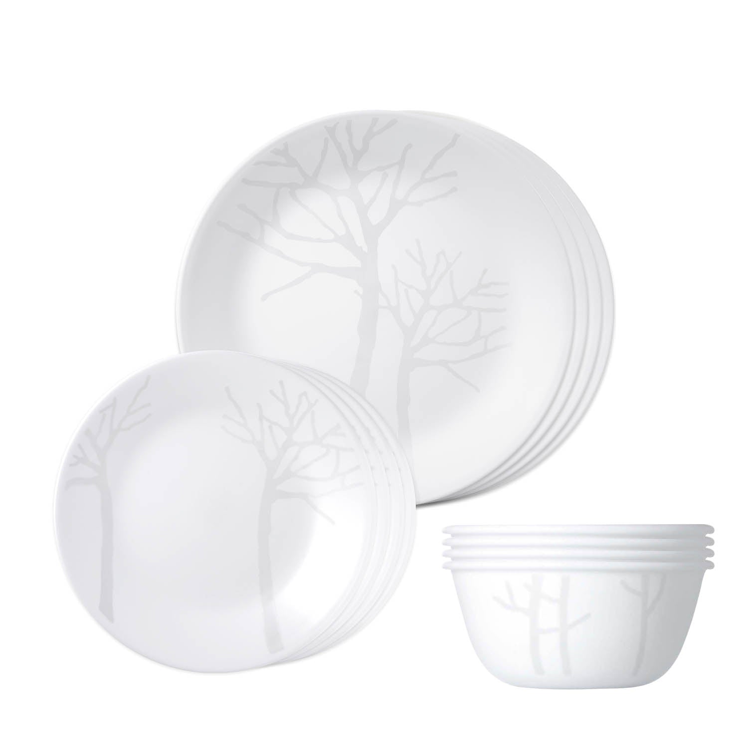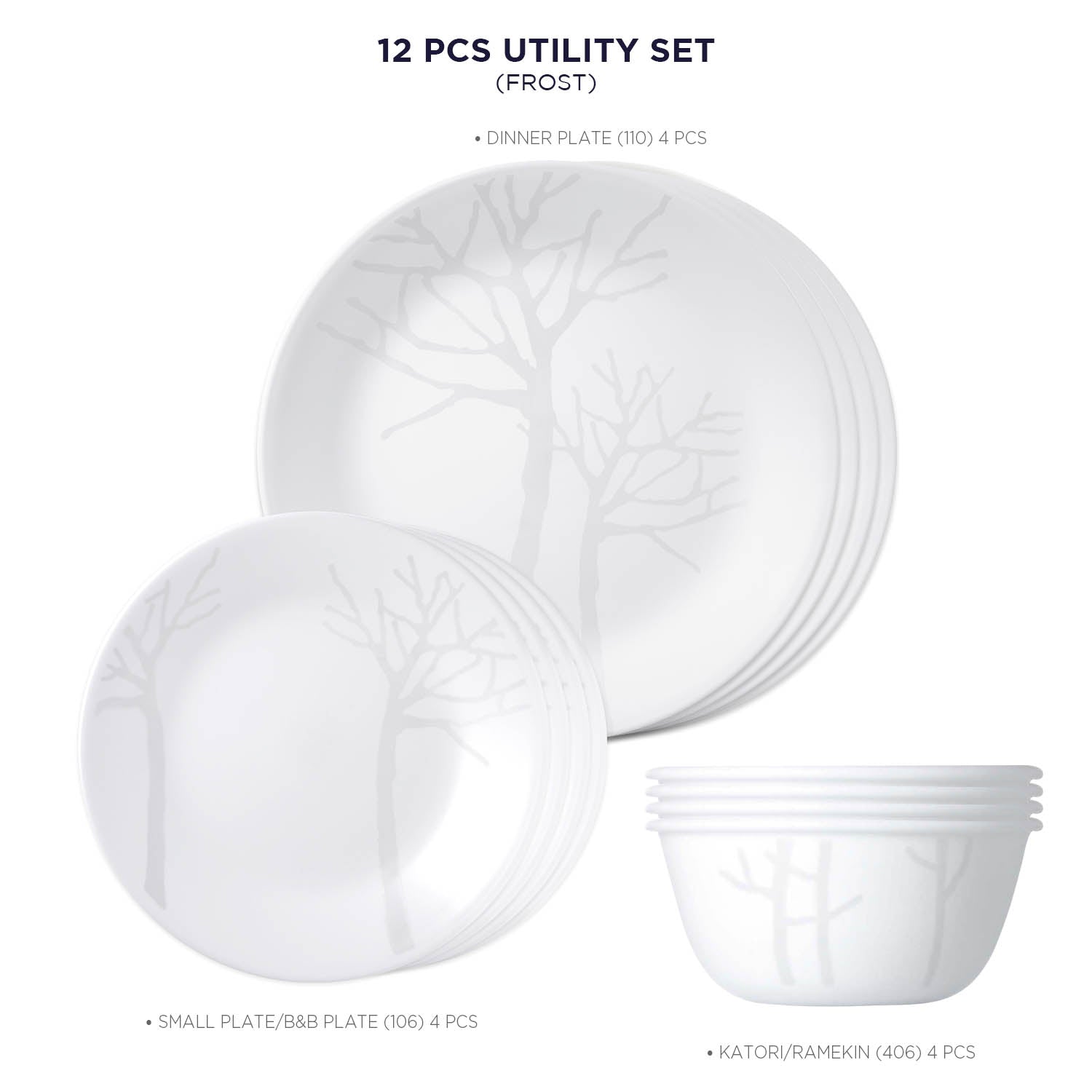 Corelle Asia Collection Gold Series Frost Utility Set (Pack of 12) 4 26cm Dinner Plate, 4 17cm Small Plate & 4 177 ml Katori
