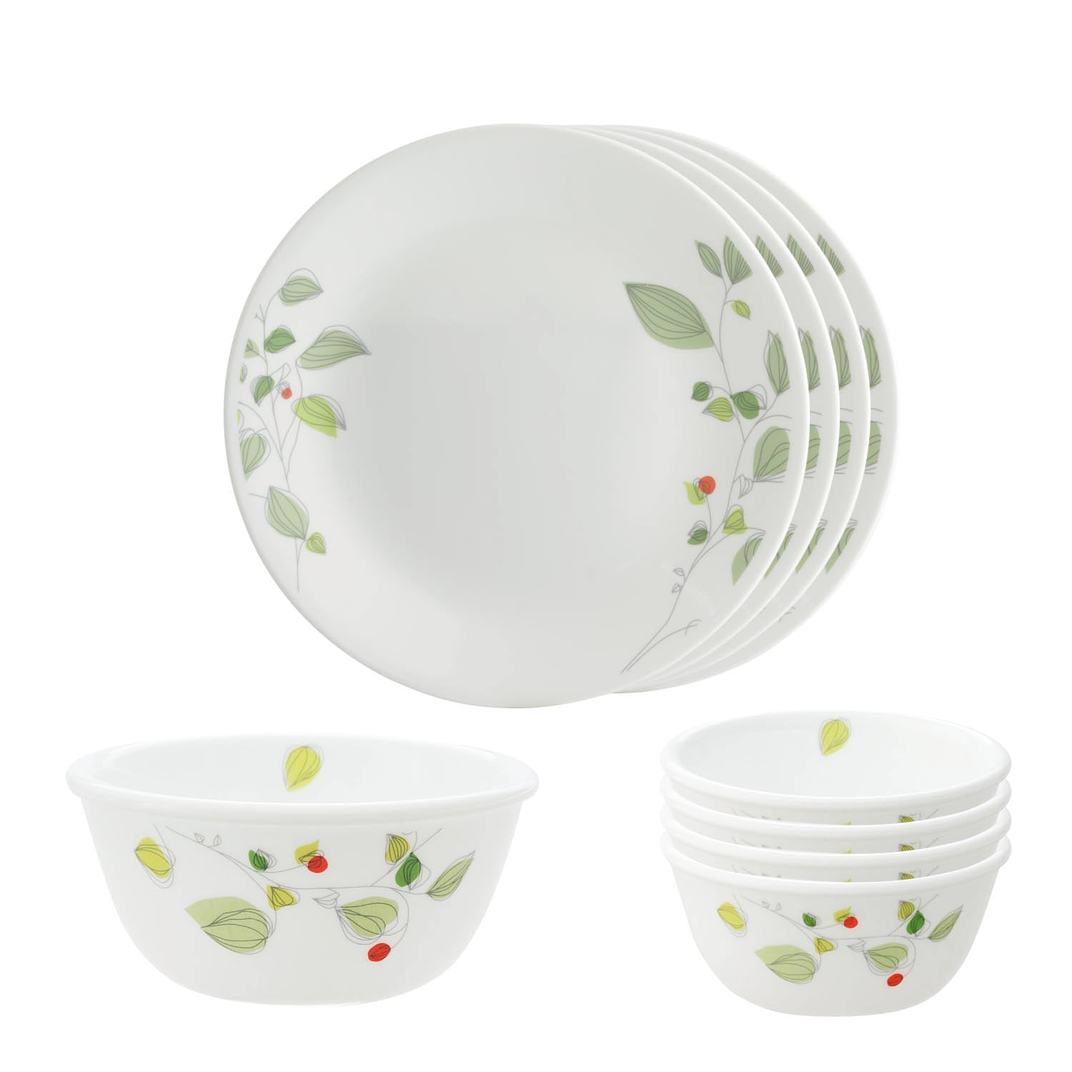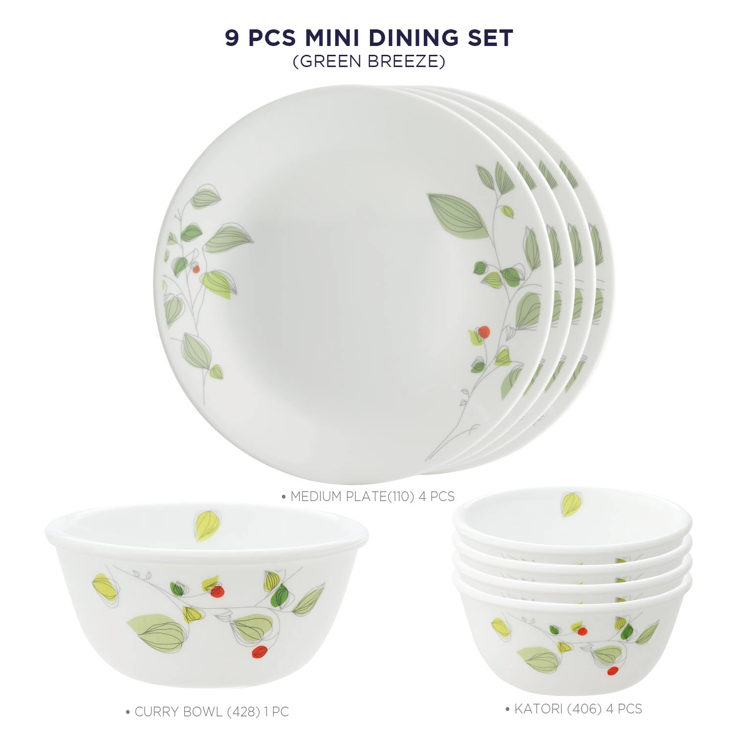 Corelle Asia Collection Green Breeze 4 26cm Dinner Plates, 4 177ml Katori & 1 828ml Curry Bowl (Pack of 9)