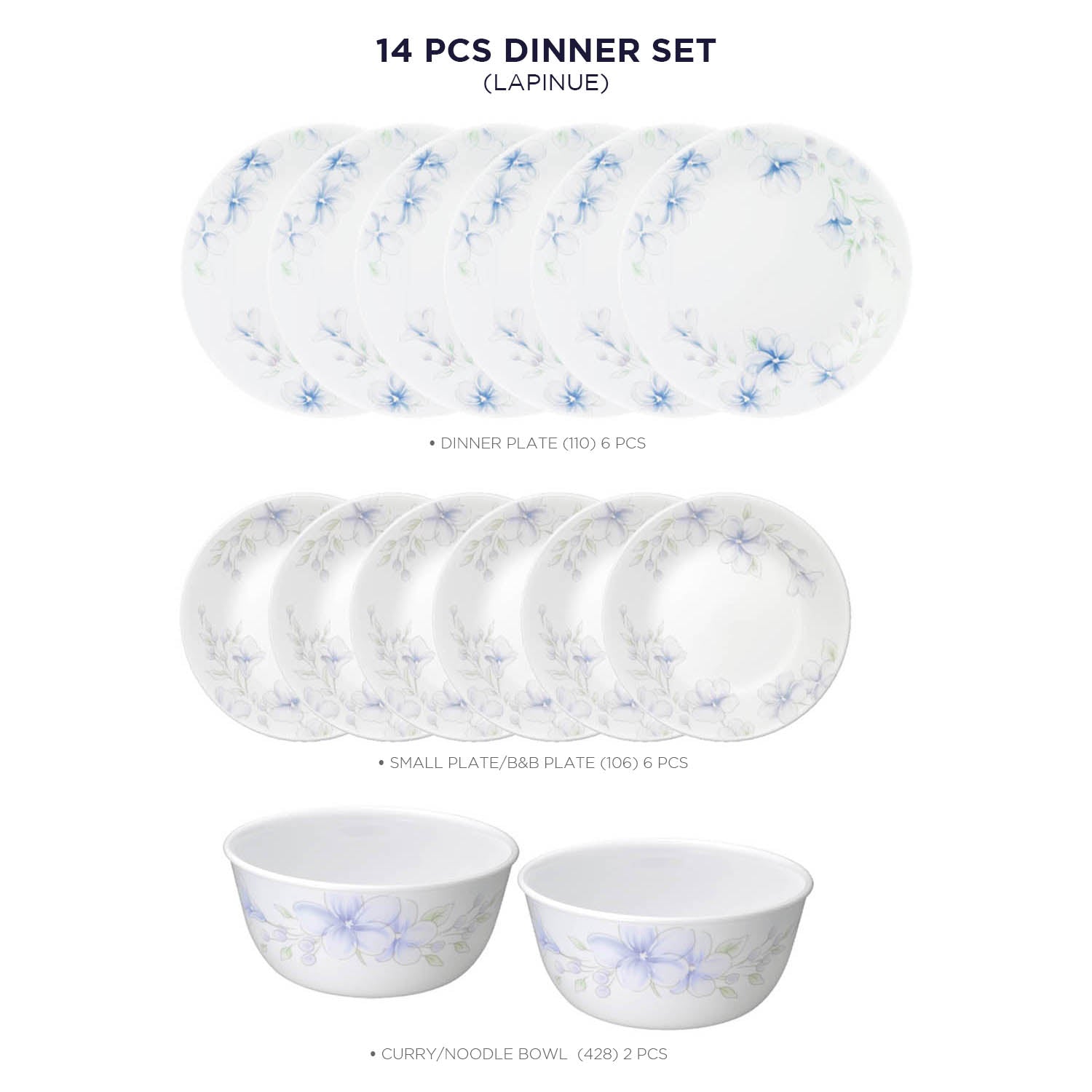 Corelle Asia Collection Lapinue 14 Pcs Dinner Set (Pack of 14) 6 26cm Dinner Plates, 6 17cm Small Plates, 2 828ml Curry Bowl