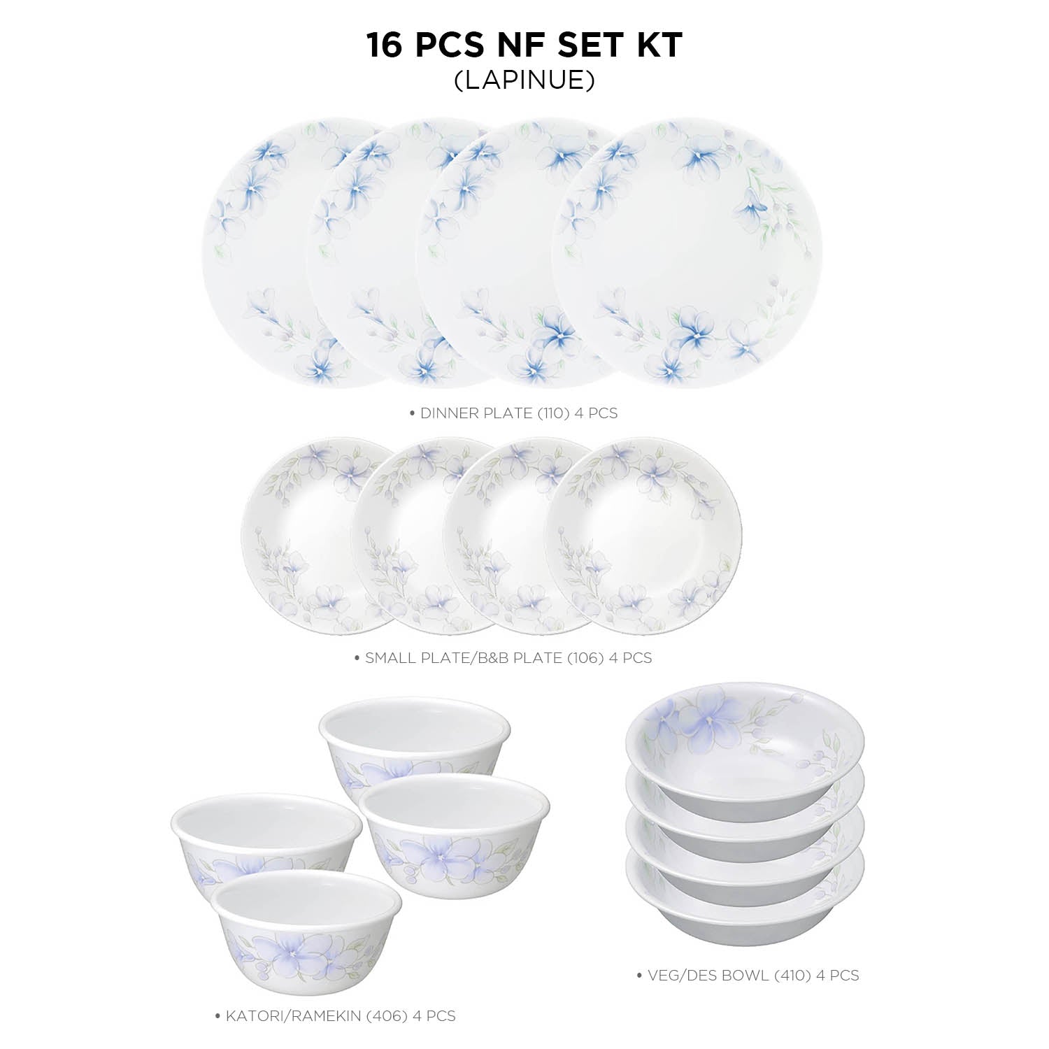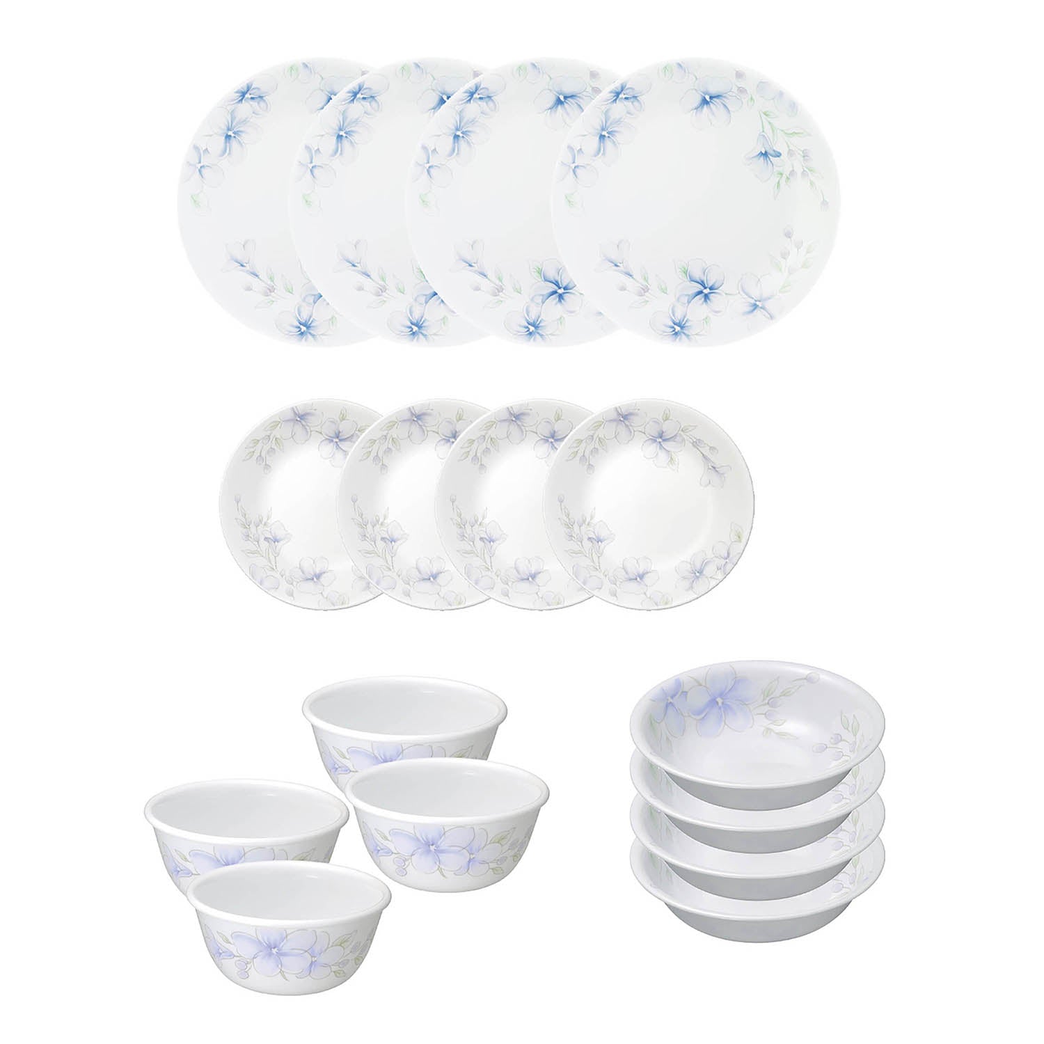 Corelle Asia Collection Lapinue 16 Pcs Nuclear Family Set (Pack of 16) 4 26cm Dinner Plates, 4 17cm Small Plates, 296ml Dessert Bowl & 177ml Katori