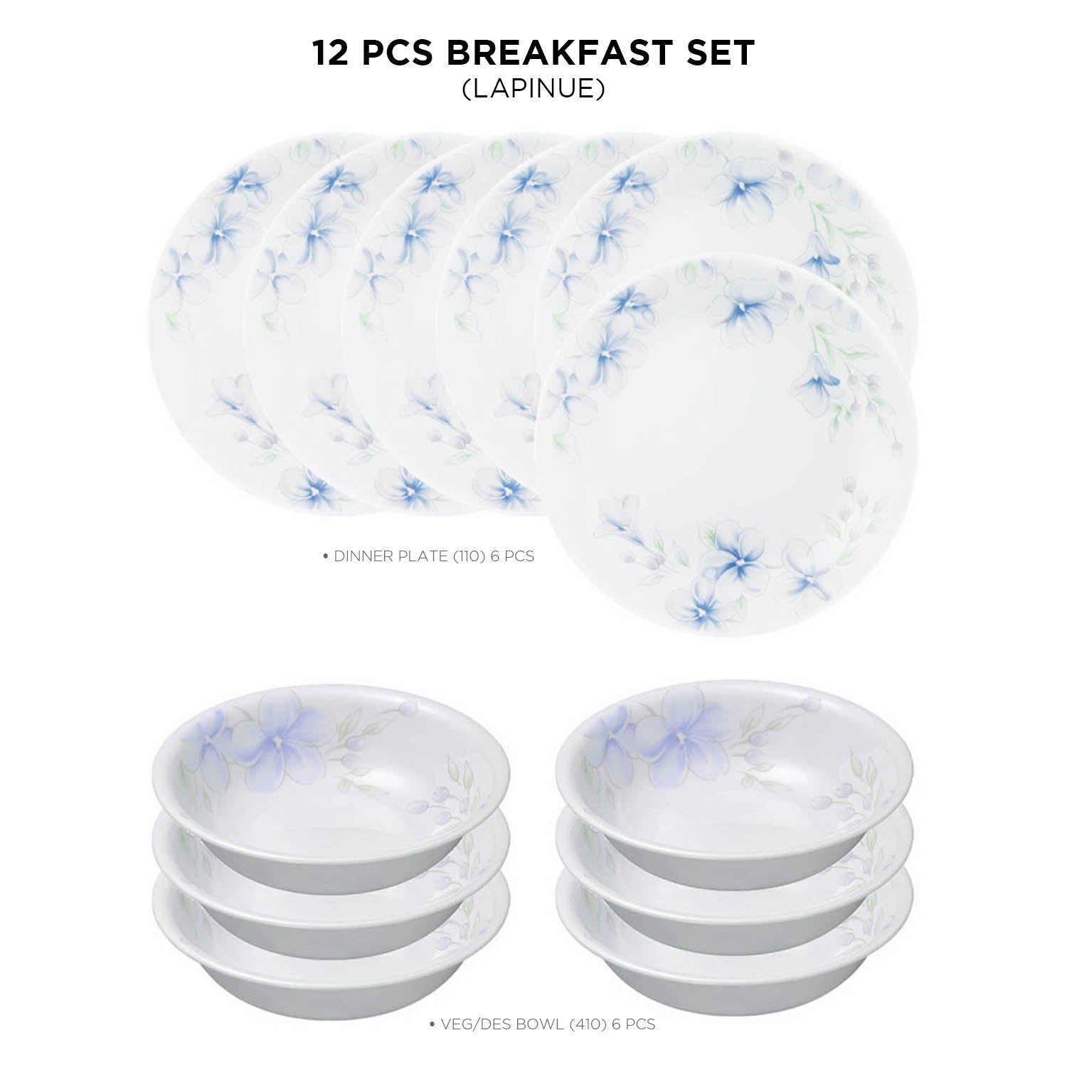 Corelle Asia Collection Lapinue Breakfast Set (Pack of 12) 6 26cm Dinner Plates, 6 296ml Dessert Bowl