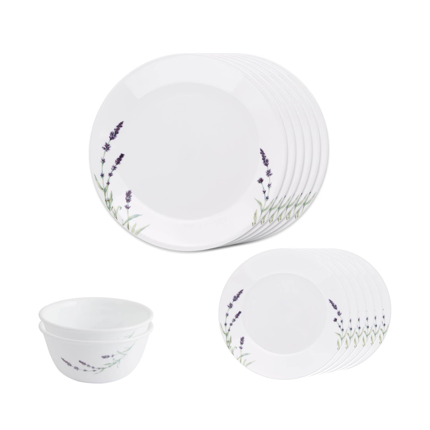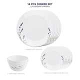 Corelle Asia Collection Lavender Garden 14 Pcs Dinner Set (Pack of 14) 6 26cm Dinner Plates, 6 17cm Small Plates, 2 828ml Curry Bowl