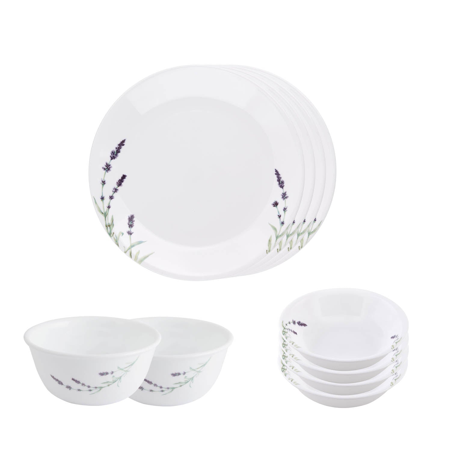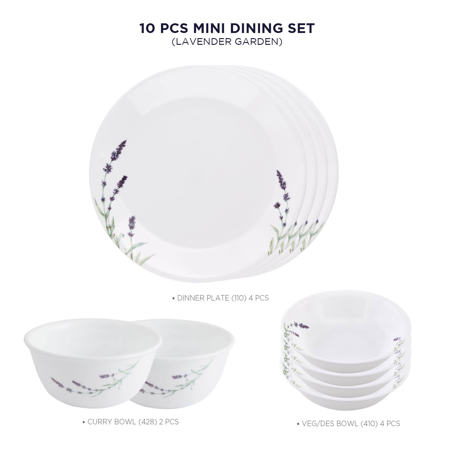 Corelle Asia Collection Lavender Garden Basic / Mini / Starter Set (Pack of 10) 4 26cm Dinner Plates, 4 296ml Dessert Bowls, 2 828ml Curry Bowls