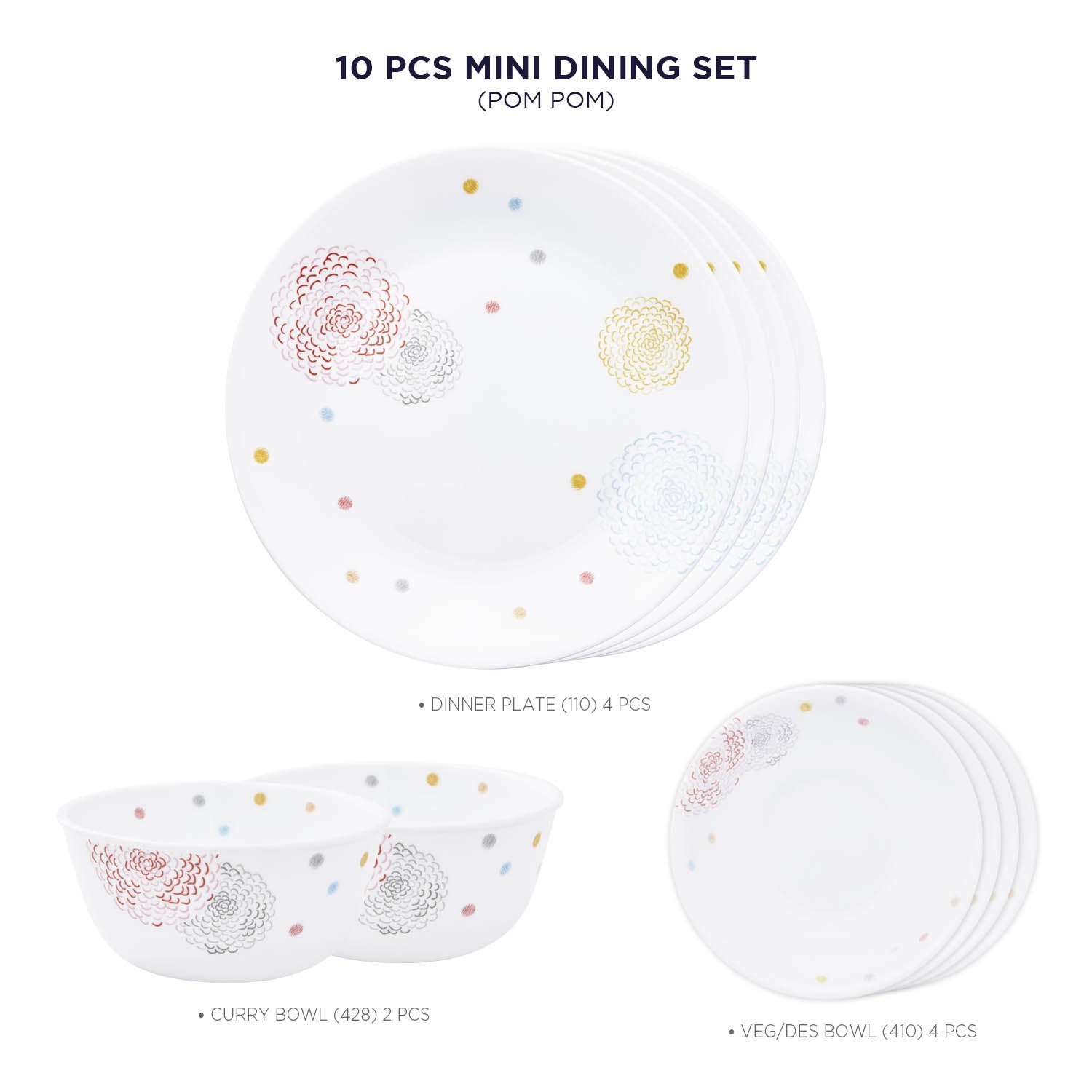 Corelle Asia Round Pom Pom 10 Pcs Mini Dining Set (VDB)