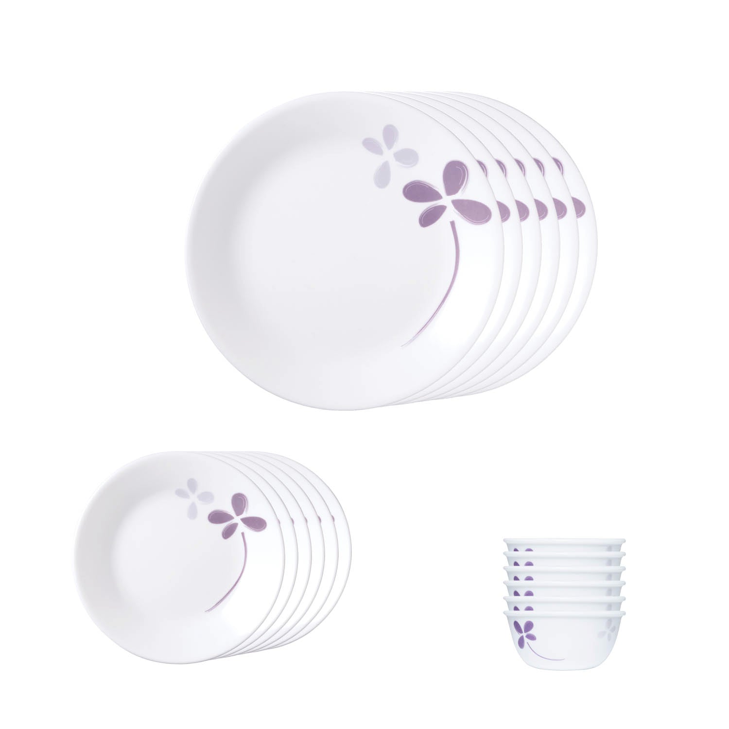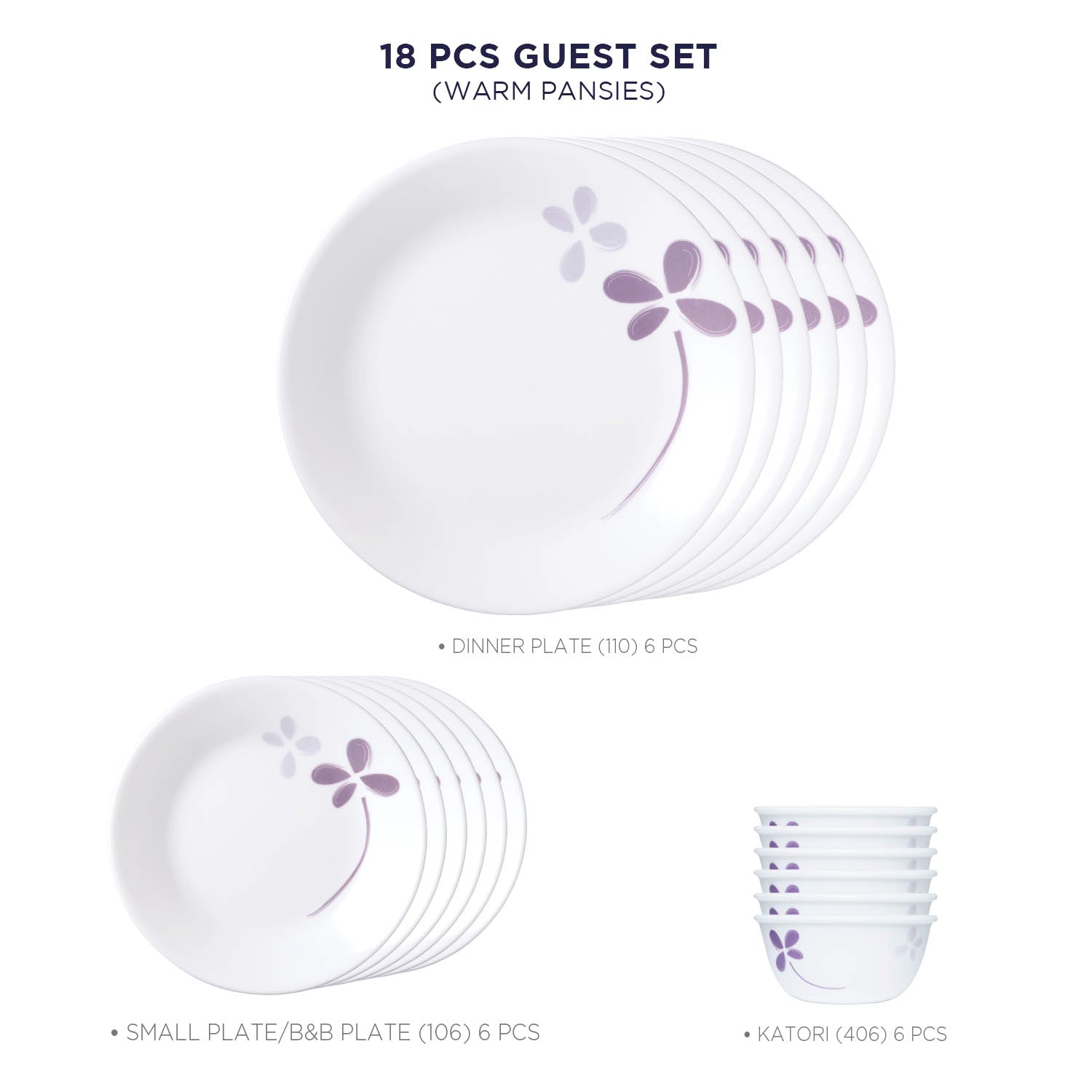 Corelle Asia Collection Warm Pansies Utility Set (Pack of 12) 4 26cm Dinner Plate, 4 17cm Small Plate & 4 177 ml Katori
