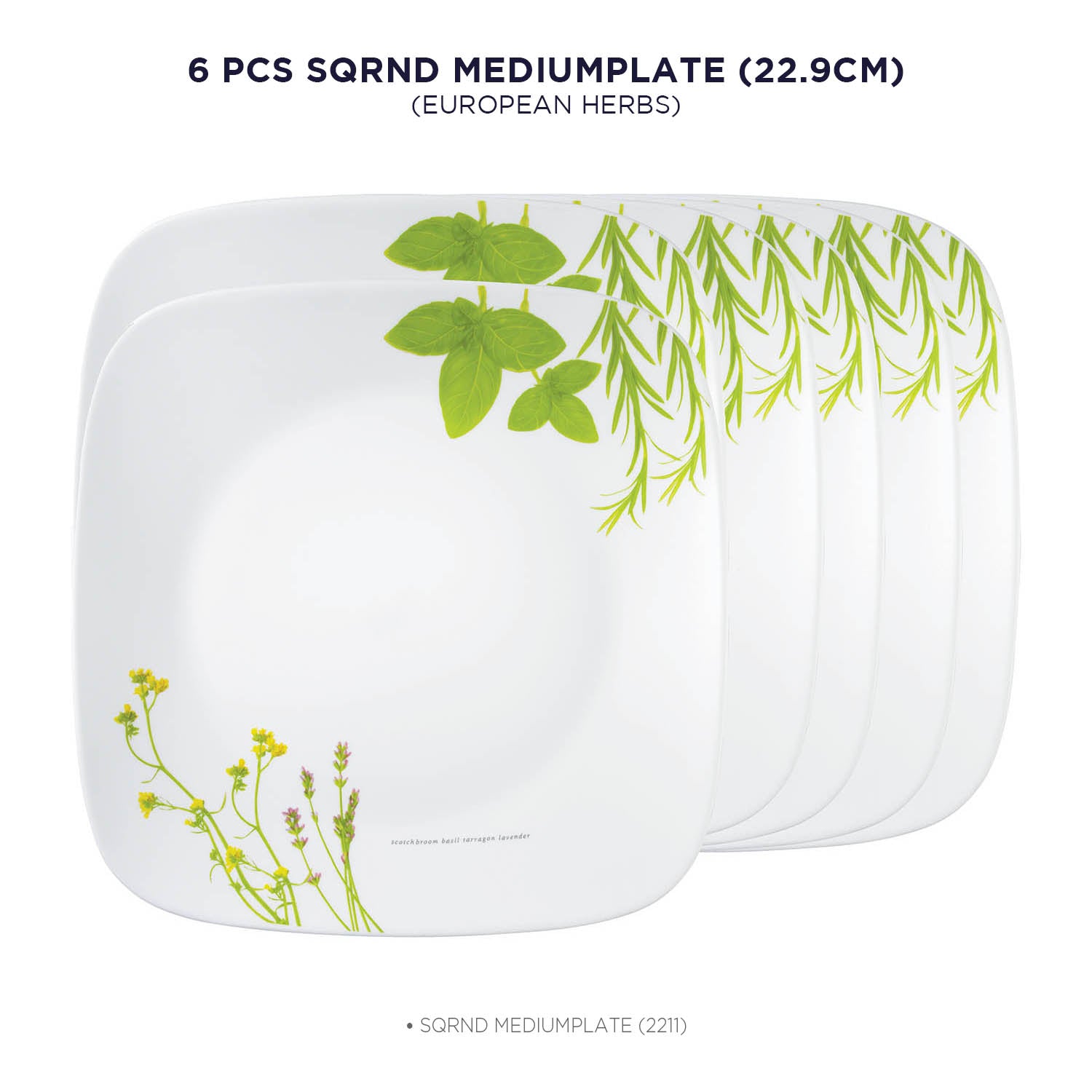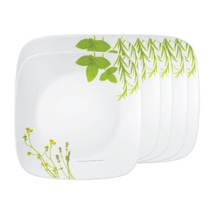 Corelle Asia Square Round Collection European Herbs 22.9 cm Square Round Medium Plate Pack Of 6