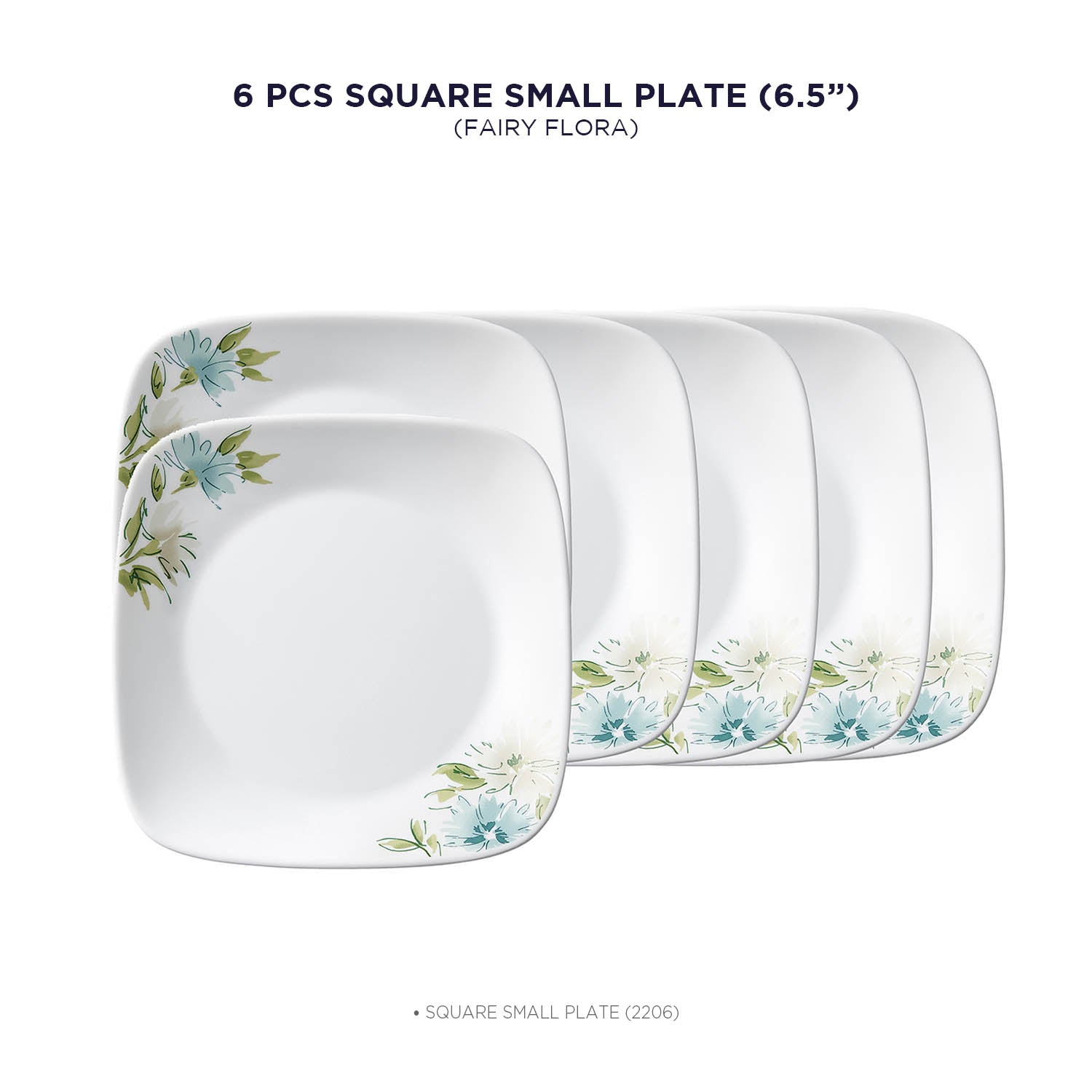 Corelle Asia Square Round Collection Fairy Flora 17 cm Square Round Small Plate Pack Of 6
