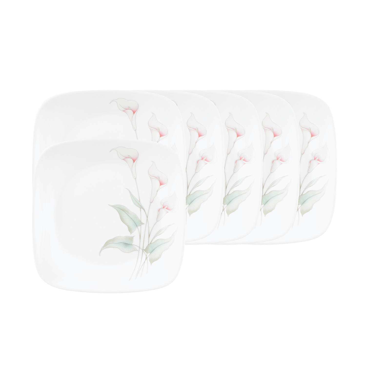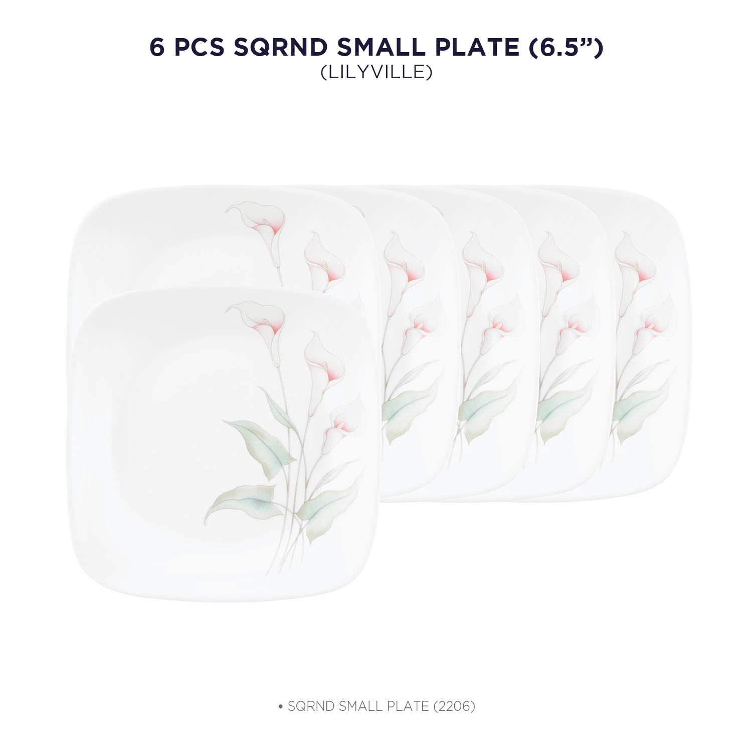 Corelle Asia Square Round Collection Lilyville 17 cm Square Round Small Plate Pack Of 6