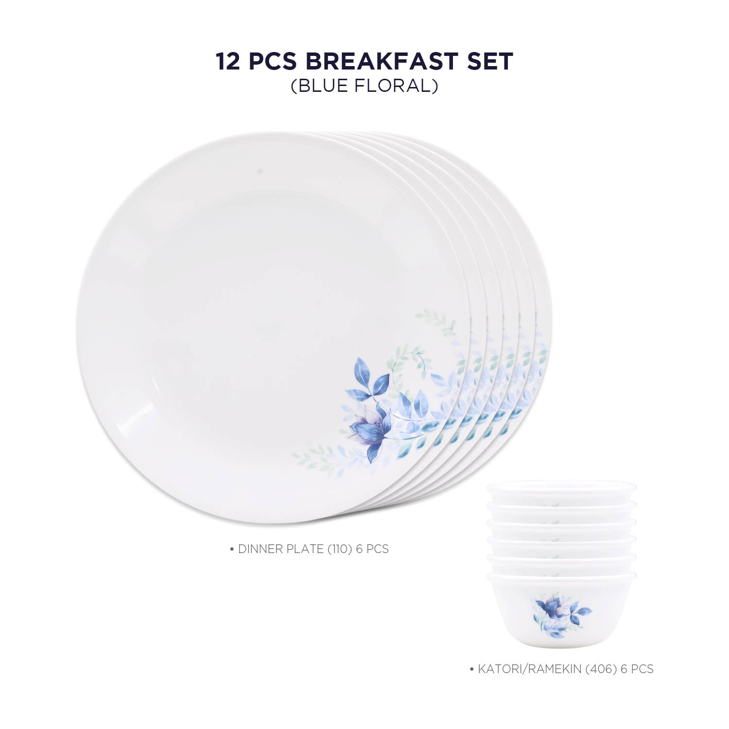 Corelle Blue Floral Breakfast Set - 12 Pc | For Family of 6 | Break & Chip Resistant | Lightweight & Durable | Microwave & Dishwasher Safe