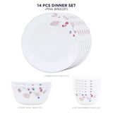 Corelle Pink Breeze1 Dinner Set - 14 Pcs | For Family of 6 | Break & Chip Resistant | Lightweight & Durable | Microwave & Dishwasher Safe