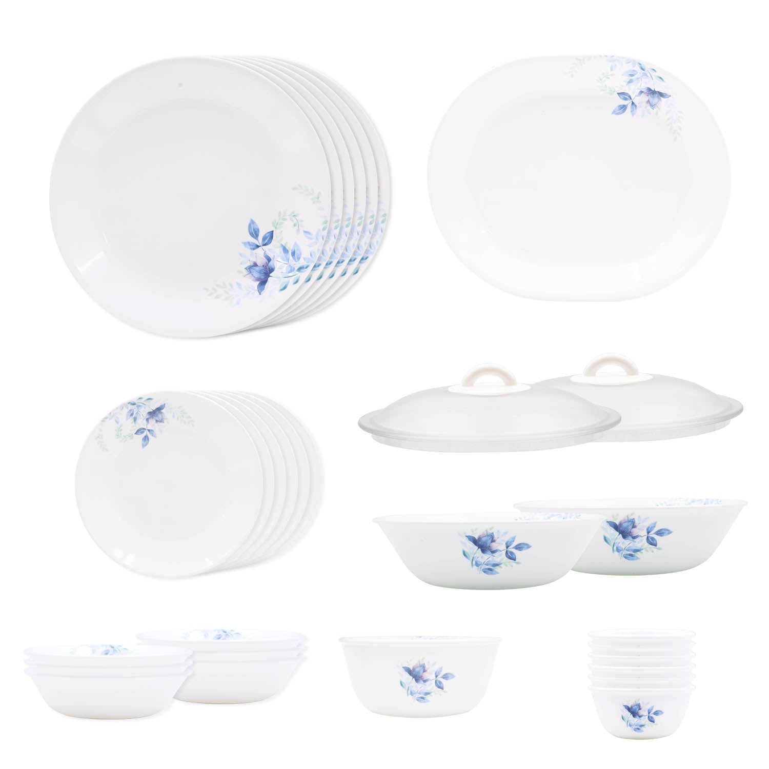 Corelle Blue Floral Dinner Set - 30 Pcs | For Family of 6 | Break & Chip Resistant | Lightweight & Durable | Microwave & Dishwasher Safe