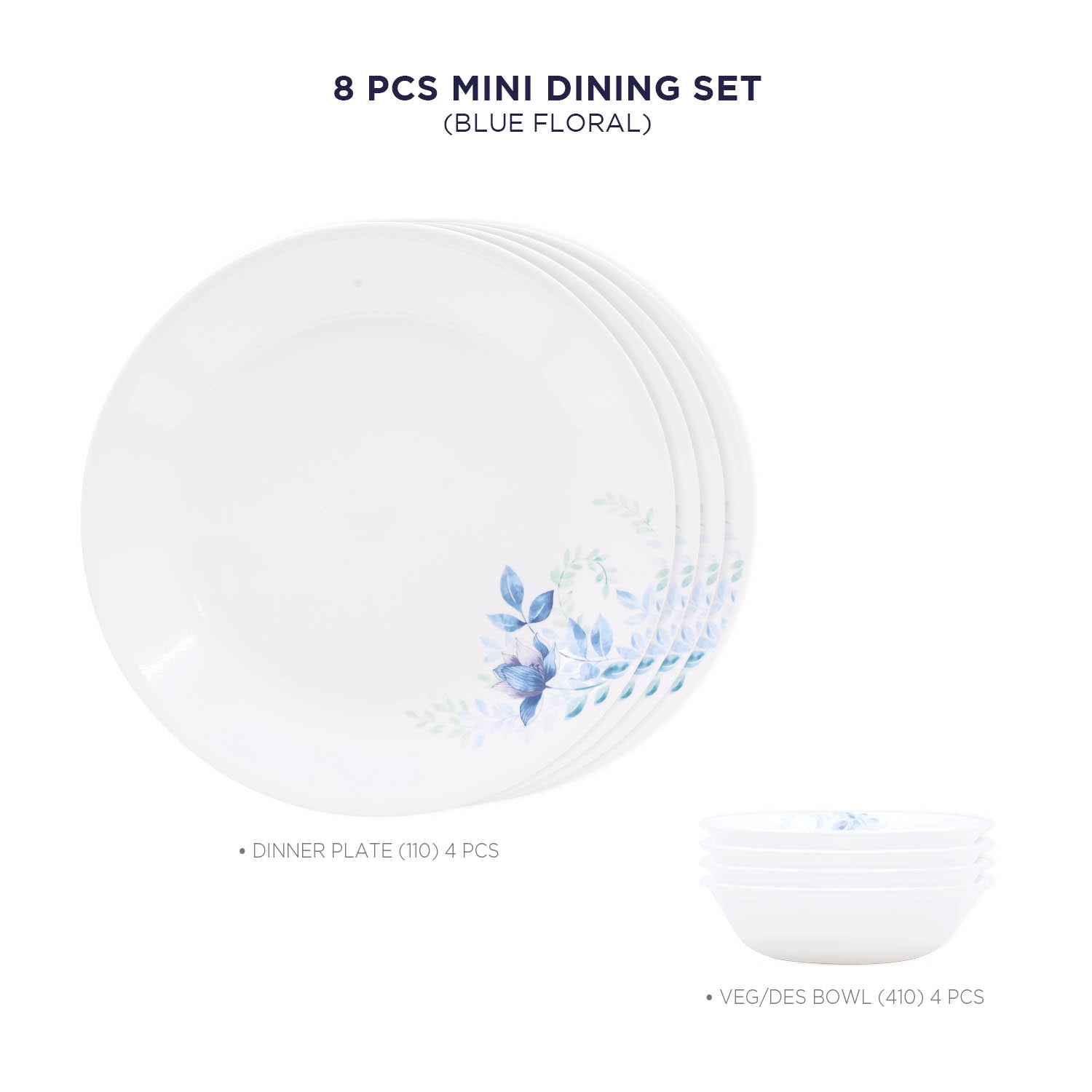 Corelle Blue Floral Mini Dining Set (VDB) - 8 Pcs | For Family of 4 | Break & Chip Resistant | Lightweight & Durable | Microwave & Dishwasher Safe