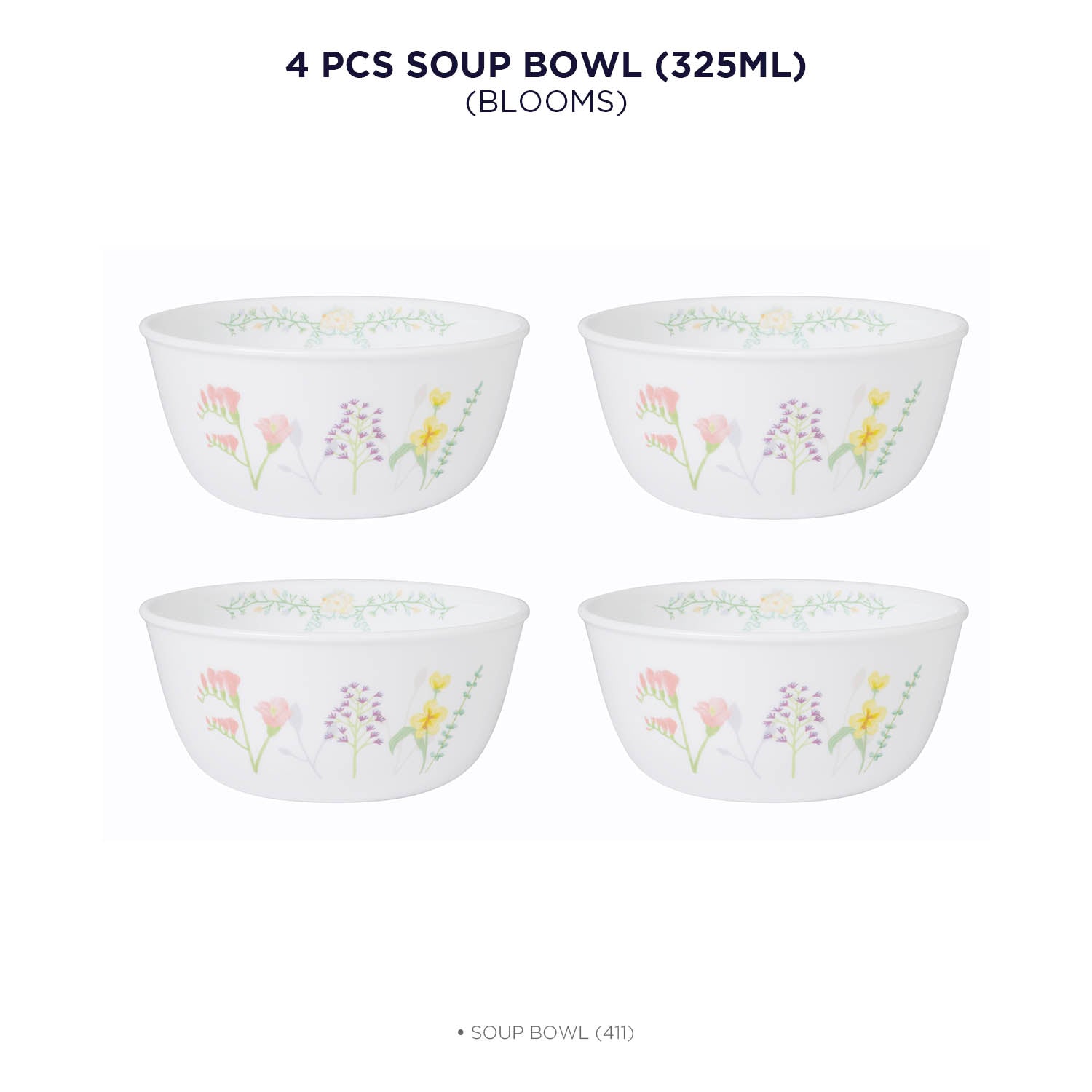 Corelle Asia Collection Blooms 325 ml Soup Bowl Pack Of 4