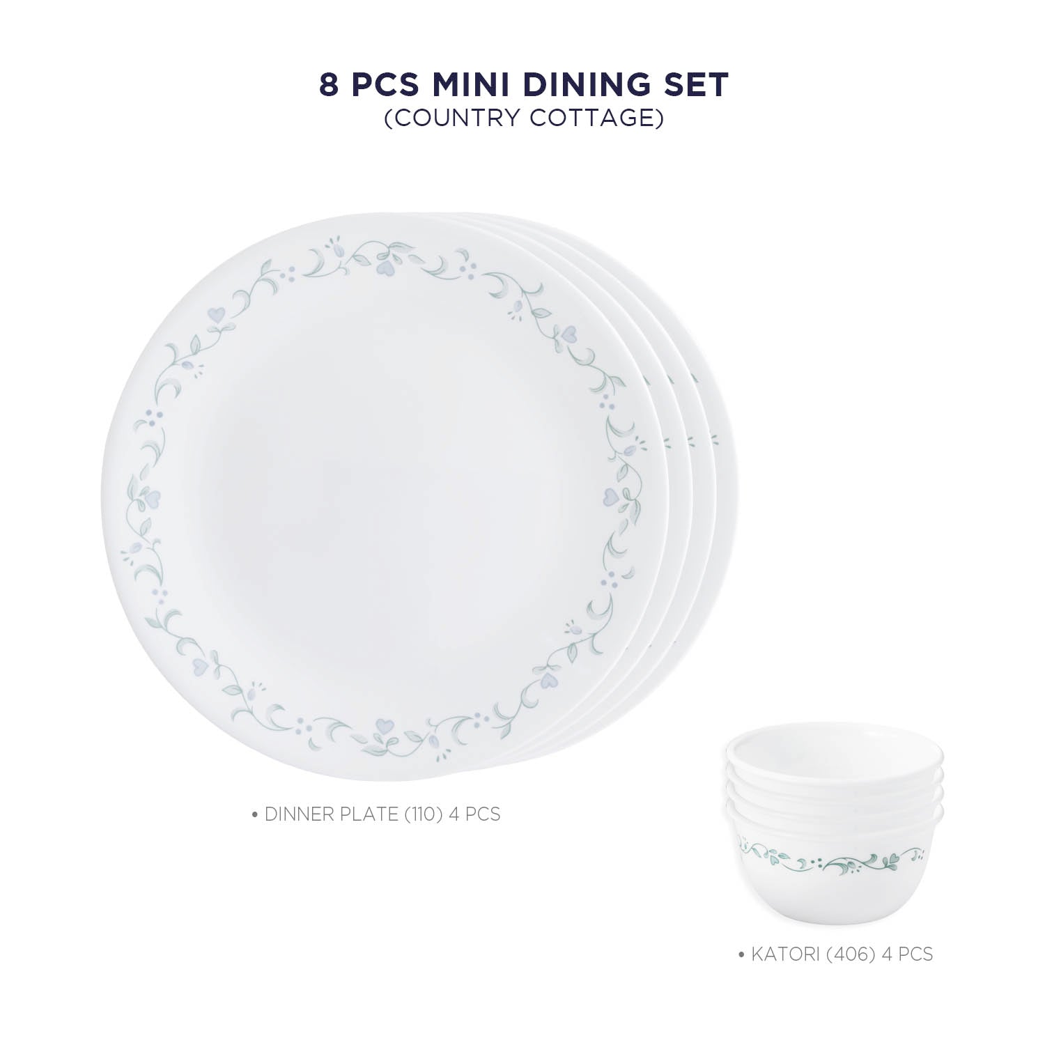 Corelle Country Cottage Glass 8Pcs Dinner Set, Multicolor
