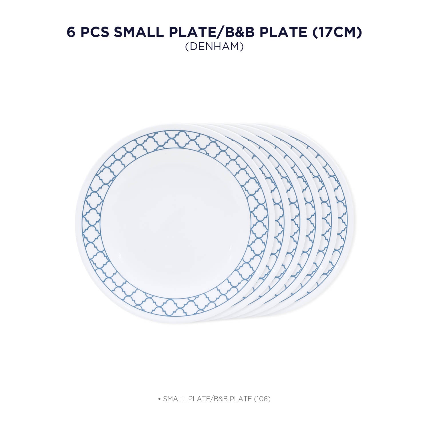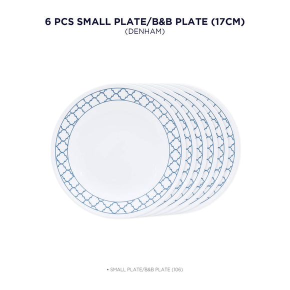 Corelle Denham 17cm Small Plate/B&B Plate Pack Of 6 | For Family of 6 | Break & Chip Resistant | Lightweight & Durable | Microwave & Dishwasher Safe