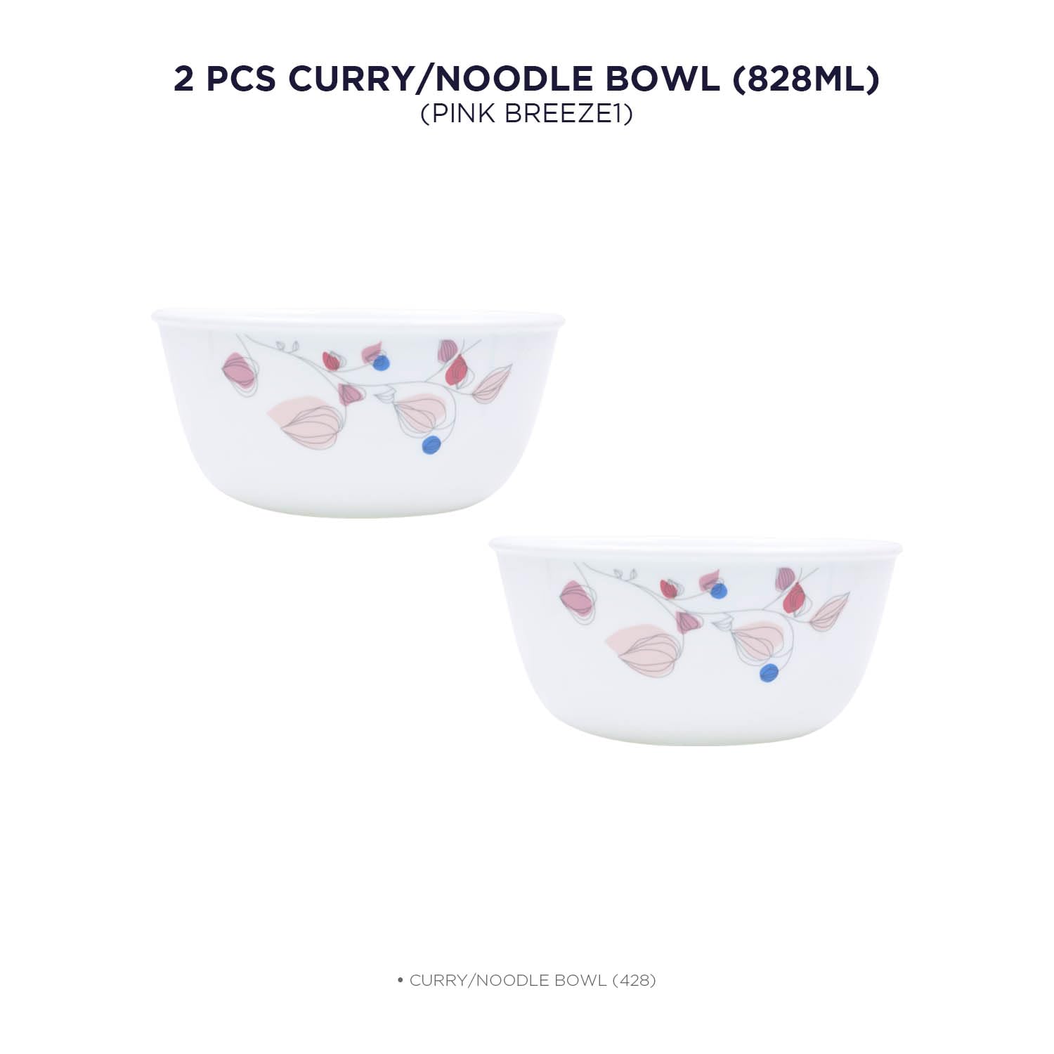 Corelle Pink Breeze1 828ml Curry / Noodle Bowl Pack Of 2 | Break & Chip Resistant | Lightweight & Durable | Microwave & Dishwasher Safe