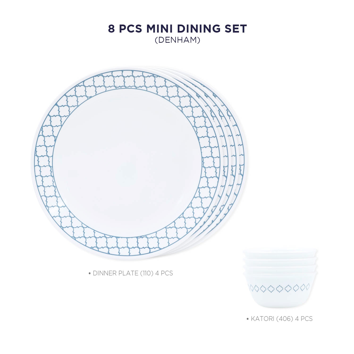 Corelle Denham Mini Dining Set (K) - 8 Pcs | For Family of 4 | Break & Chip Resistant |Lightweight & Durable | Microwave & Dishwasher Safe
