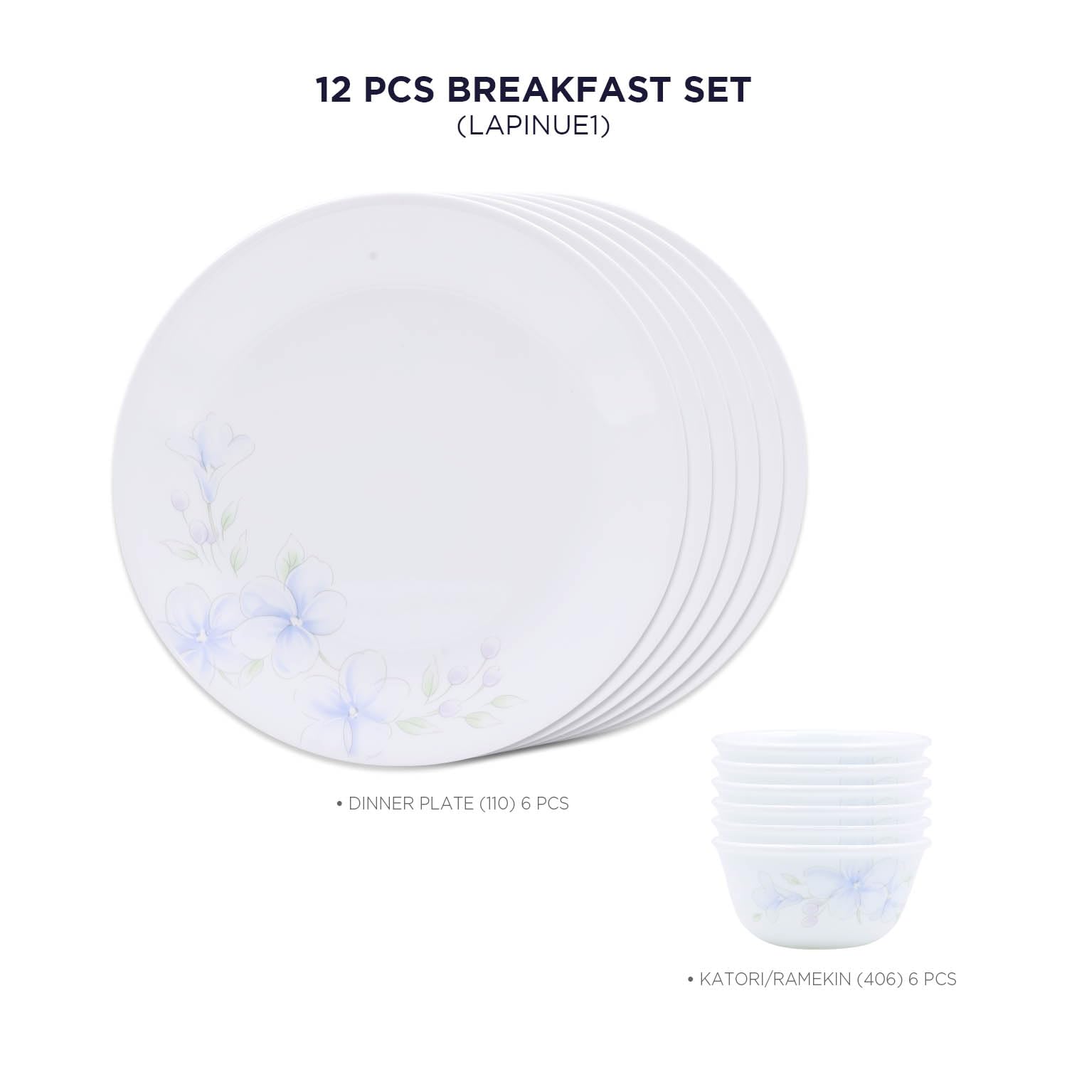 Corelle Lapinue1 - 12 Pc Breakfast Set | For Family of 6| Break & Chip Resistant | Lightweight & Durable | Microwave & Dishwasher Safe