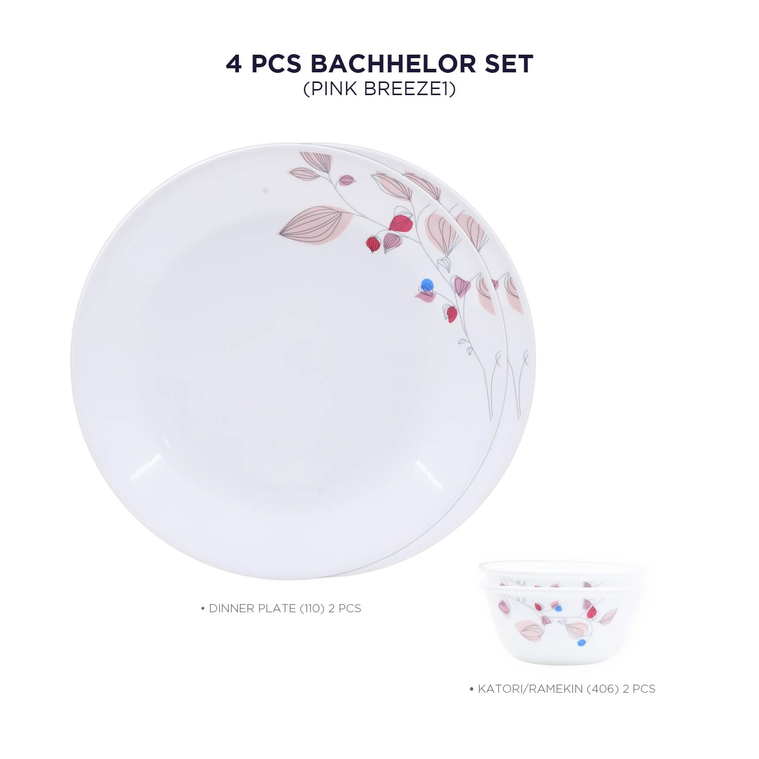 Corelle Pink Breeze1 - 4 Pcs Bachelor Set (K) | For Family of 2| Break & Chip Resistant | Lightweight & Durable | Microwave & Dishwasher Safe