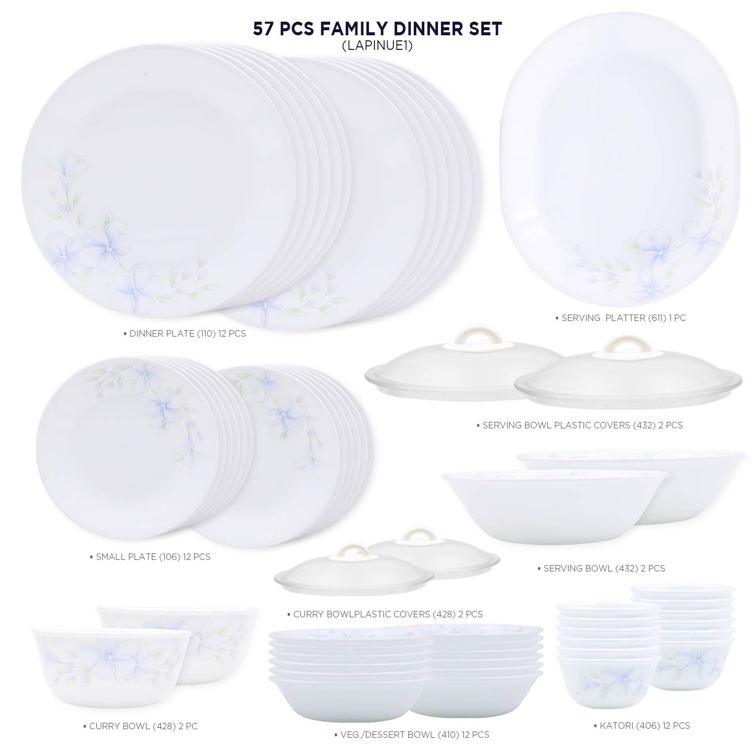 Corelle Lapinue1 - 57 Pcs Dinner Set | For Family of 12| Break & Chip Resistant | Lightweight & Durable | Microwave & Dishwasher Safe
