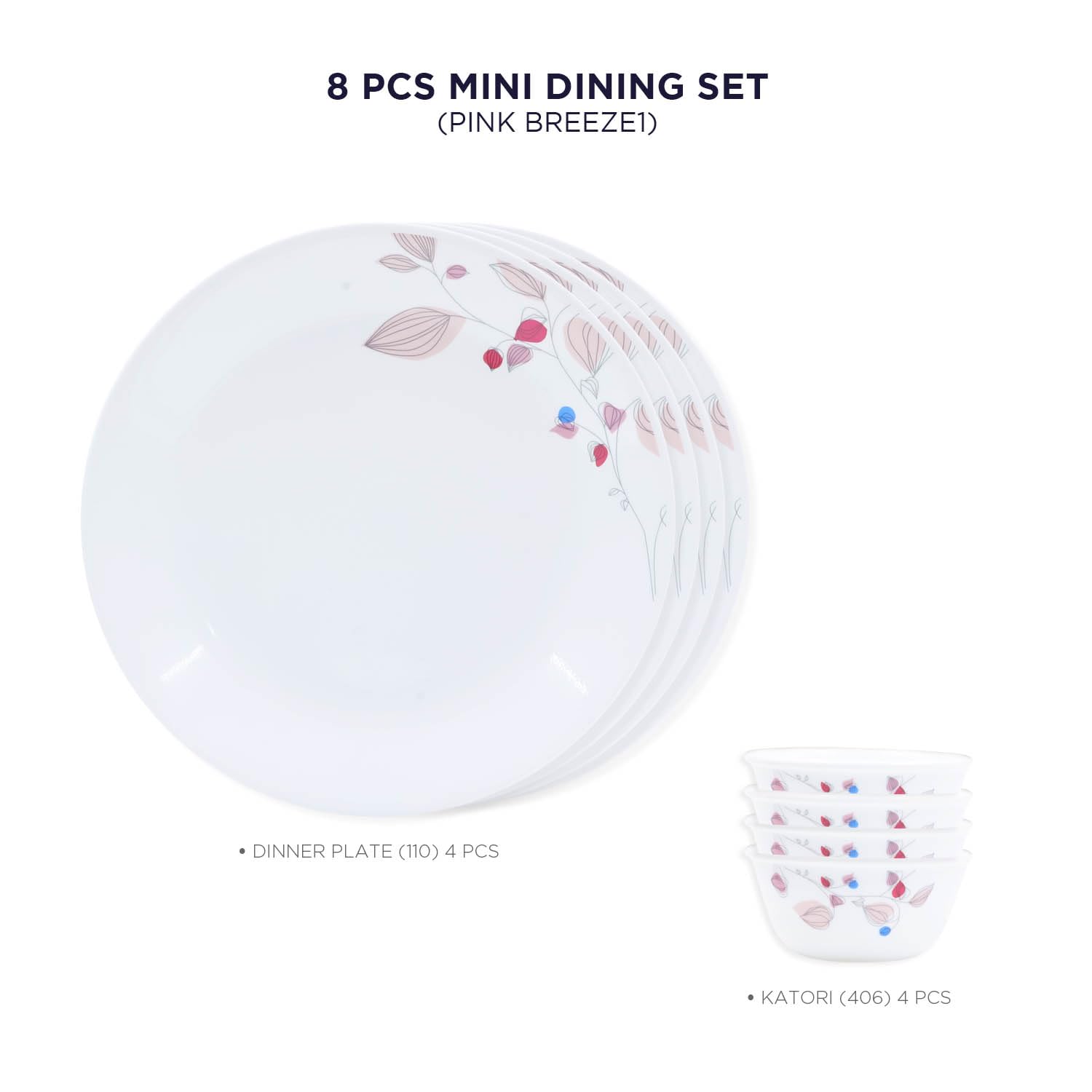 Corelle Pink Breeze1 - 8 Pcs Mini Dining Set (K) | For Family of 4| Break & Chip Resistant | Lightweight & Durable | Microwave & Dishwasher Safe