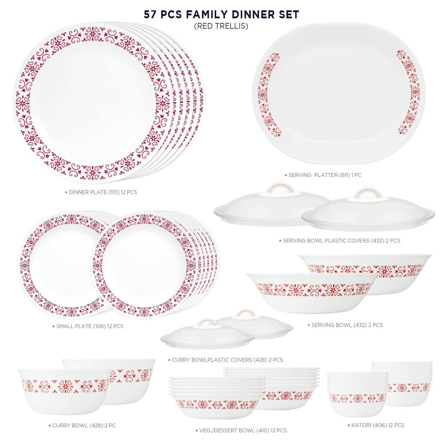 Corelle Livingware 57 Pcs Red Trellis Dinner Set
