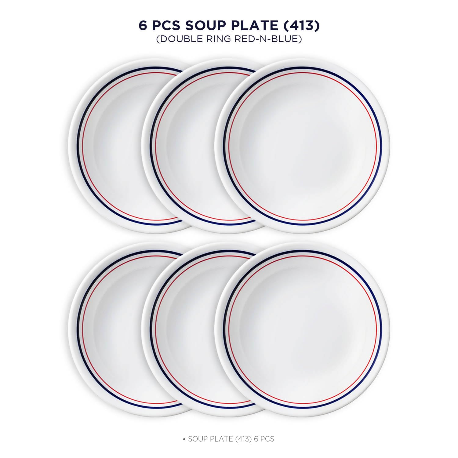 Corelle Livingware Collection Double Ring Red-N-Blue Pattern 17CM Soup Plate Pack Of 6