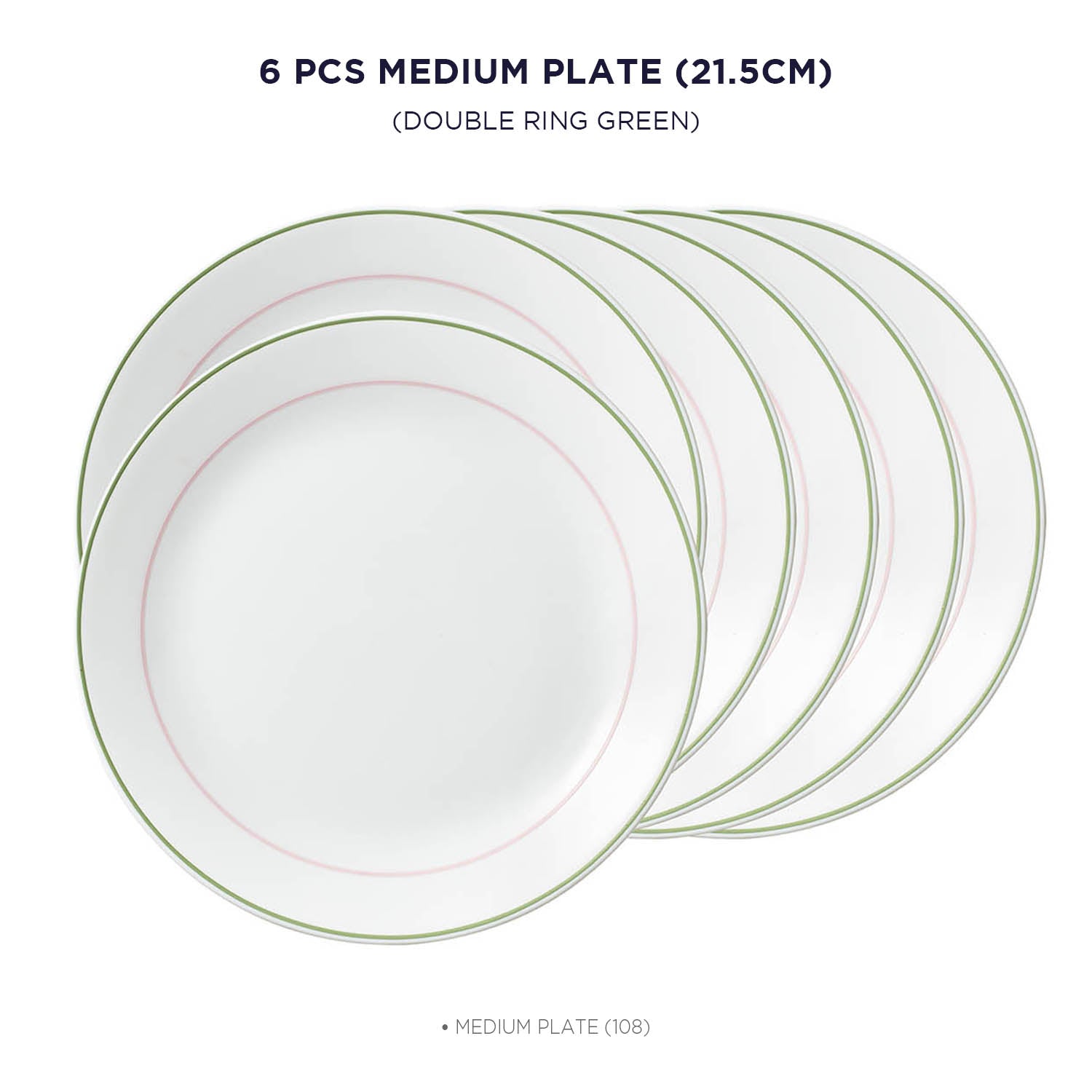 Corelle Livingware Double Ring Green 22 cm Medium Plate Pack Of 6