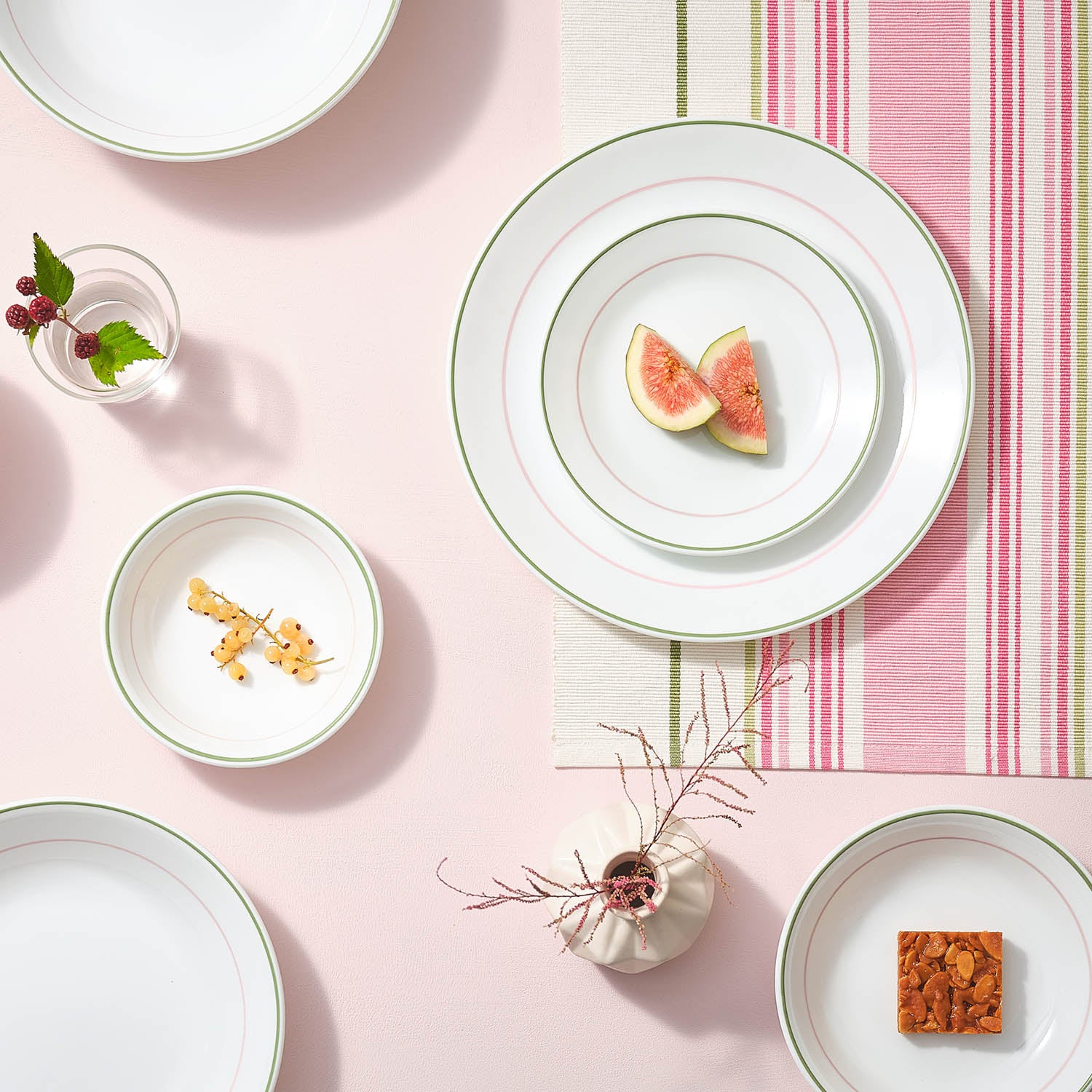 - Start the morning off right with a great big healthy meal on the Corelle Double Ring Green Dinnerware