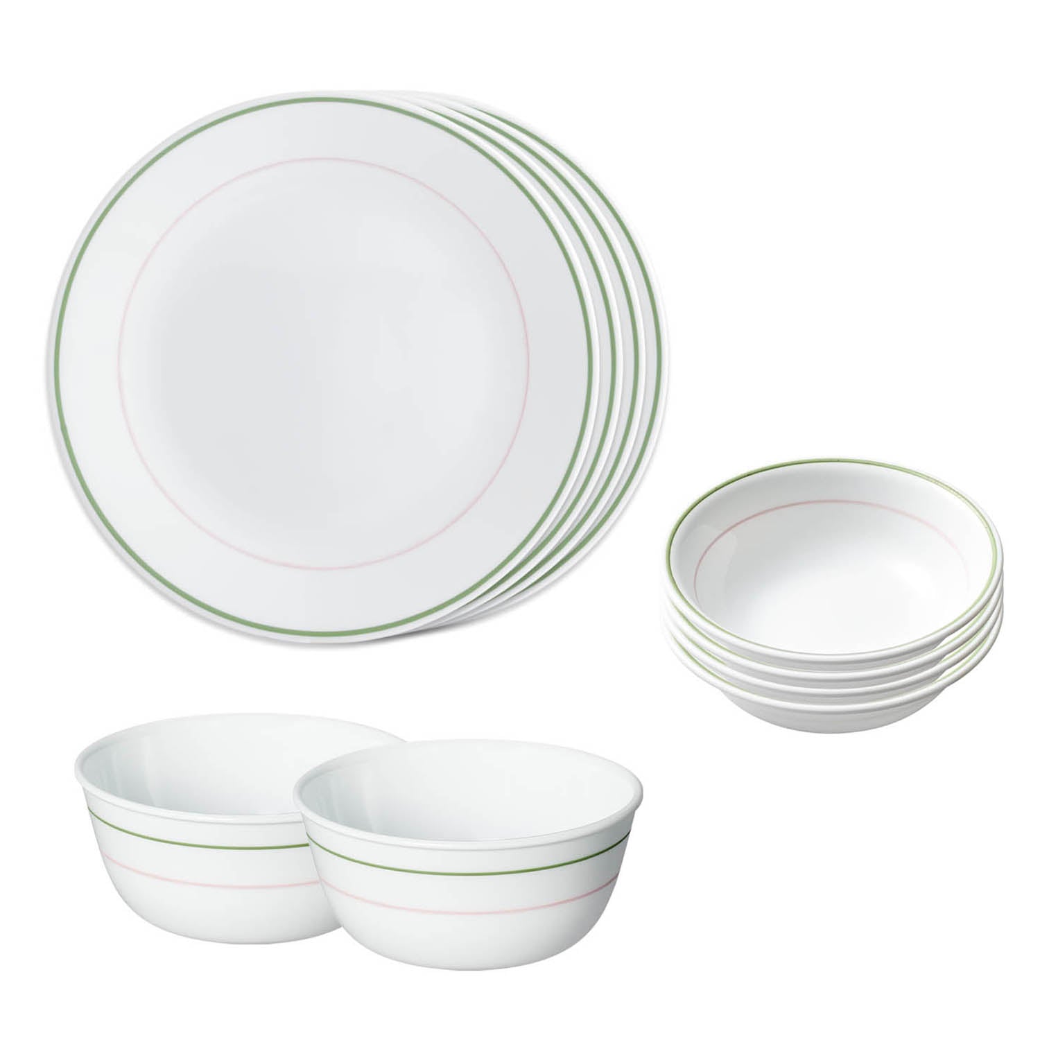 Corelle Livingware Round Double Ring Green 10 Pcs Mini Dining Set (VDB)