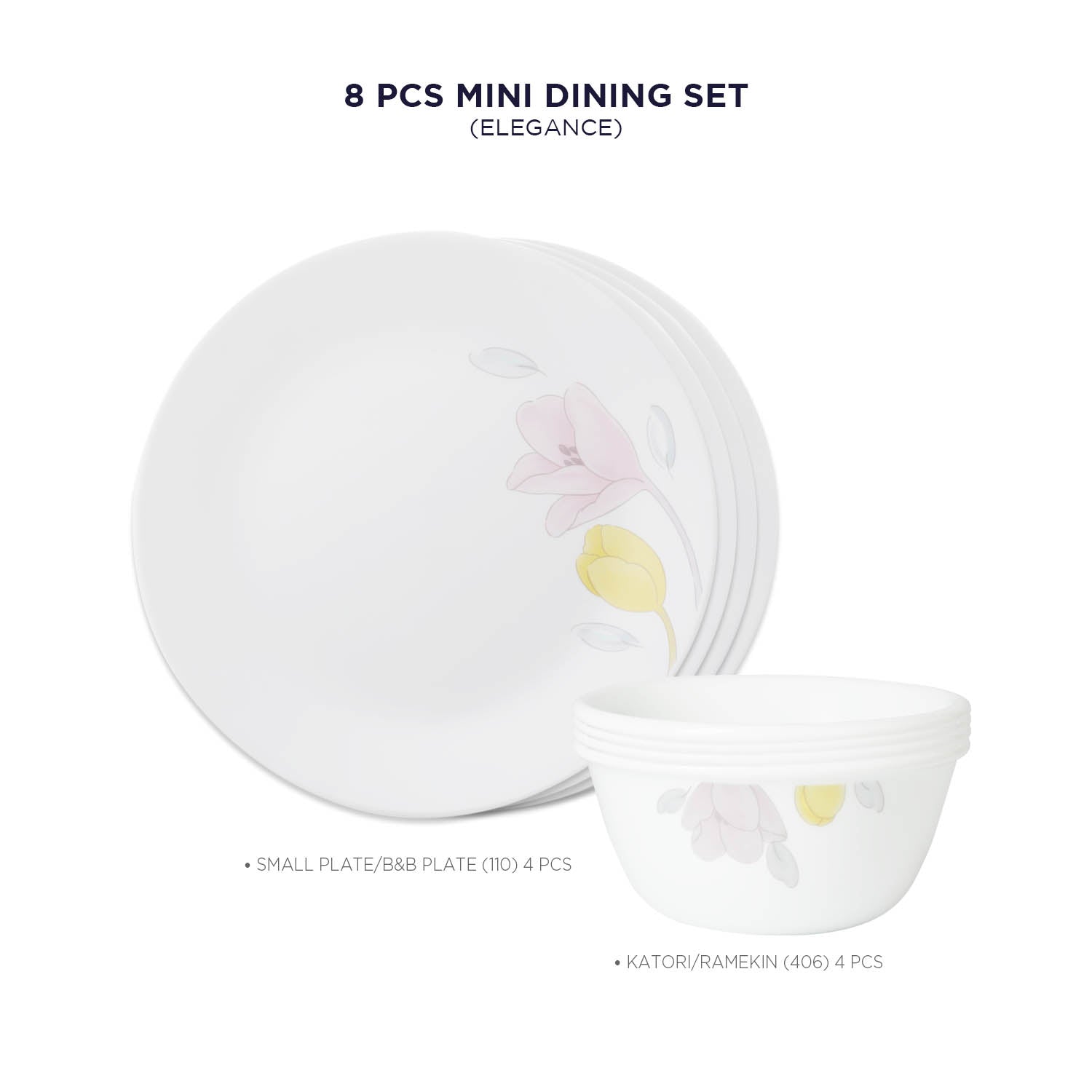 Corelle Livingware Plus Elegance 4 26cm Dinner Plate & 4 177ml Katori (Pack of 8)