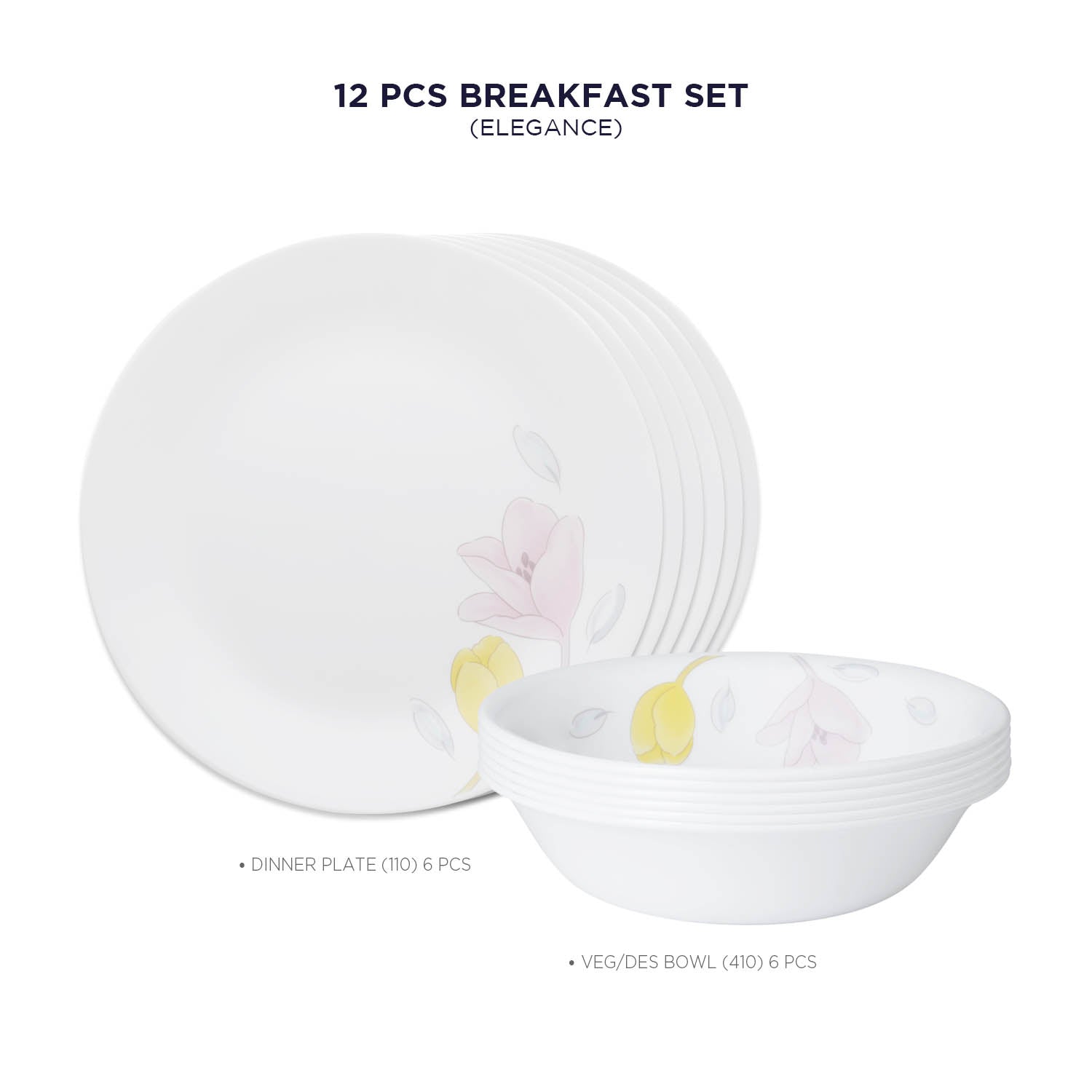 Corelle Livingware Plus Elegance Breakfast Set (Pack of 12) 6 26cm Dinner Plates, 6 296ml Dessert Bowl