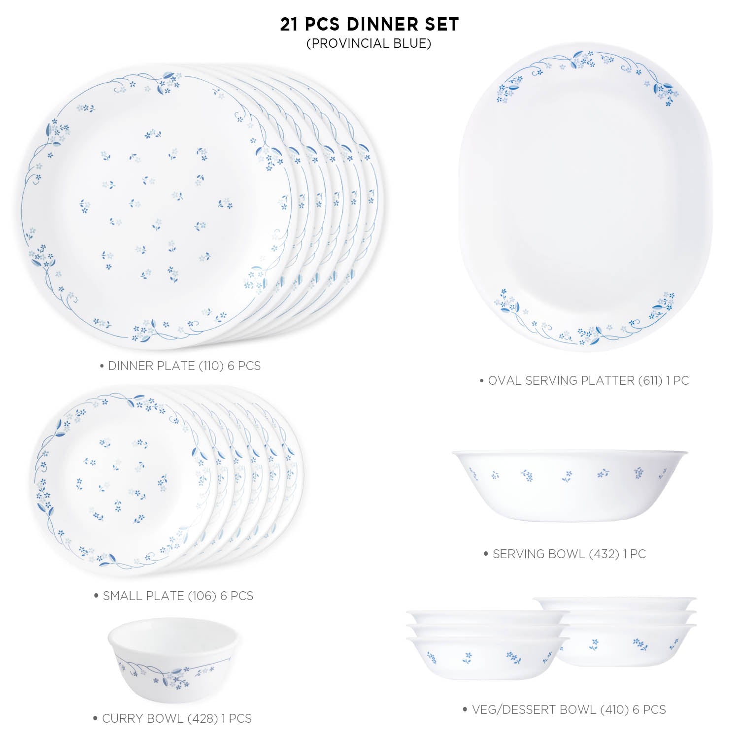 Corelle Livingware Provincial Blue 21 Pcs Dinner Set