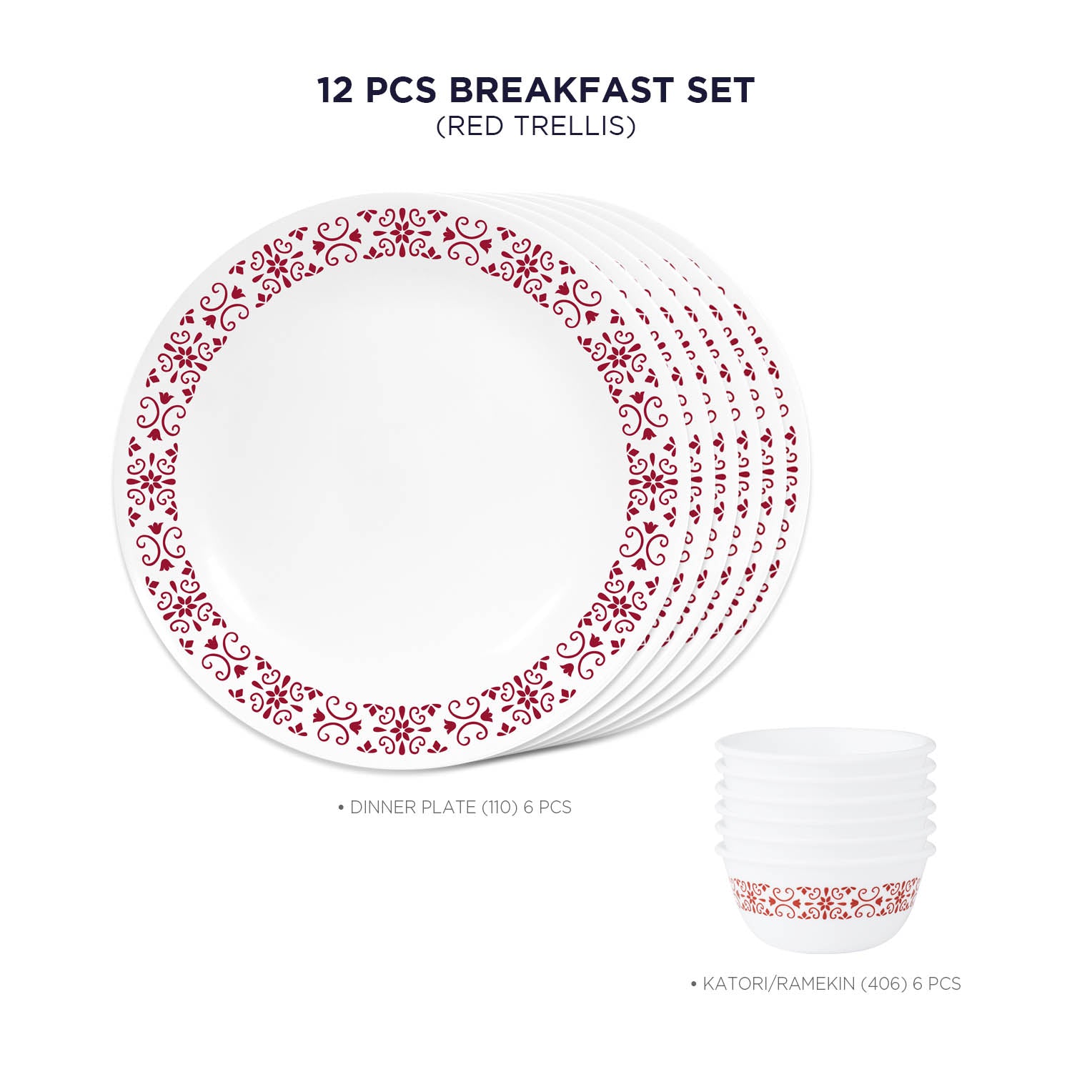 Corelle Livingware Round Red Trellis 12 Pcs Breakfast Set (K)