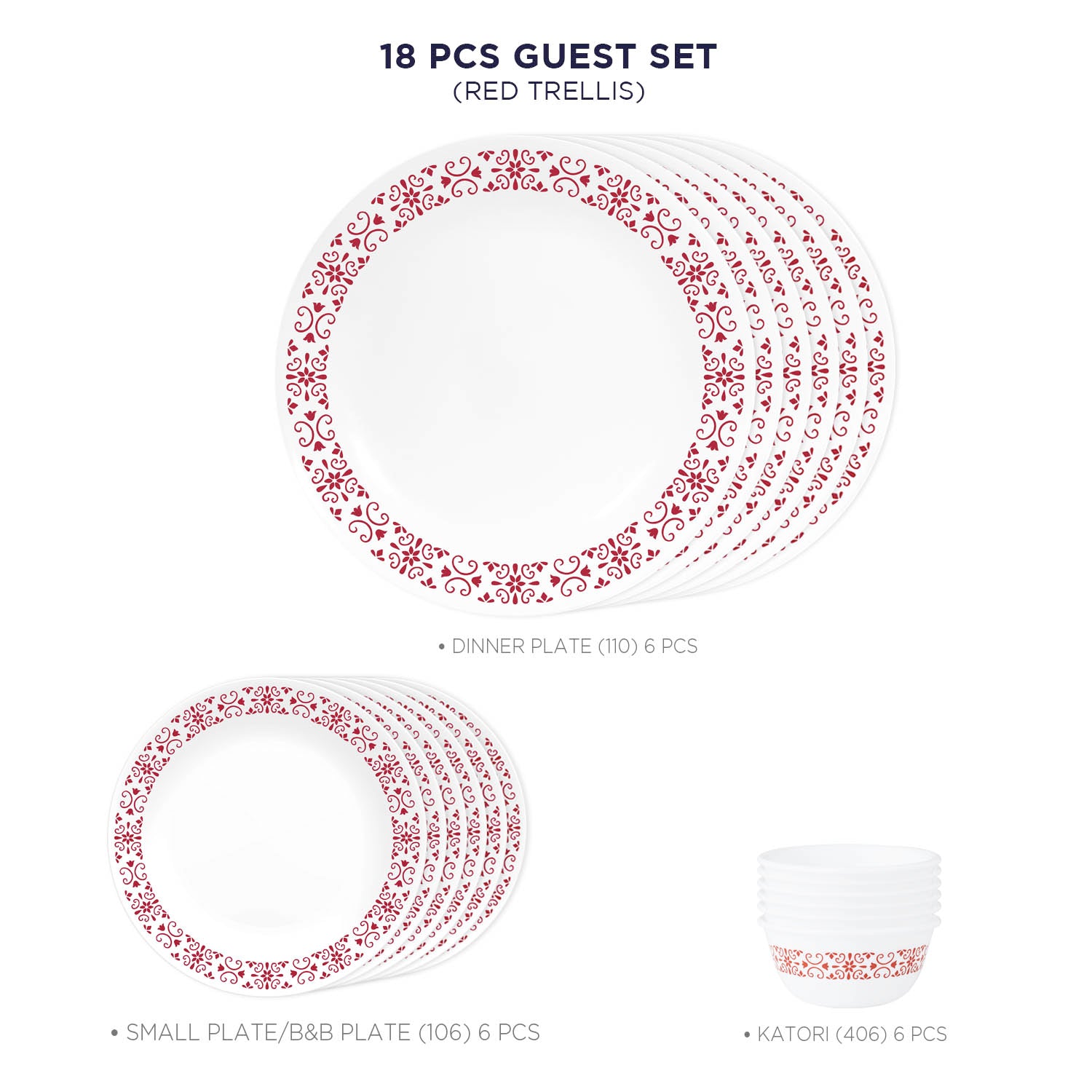 Corelle Livingware Red Trellis Utility Set (Pack of 12) 4 26cm Dinner Plate, 4 17cm Small Plate & 4 177 ml Katori