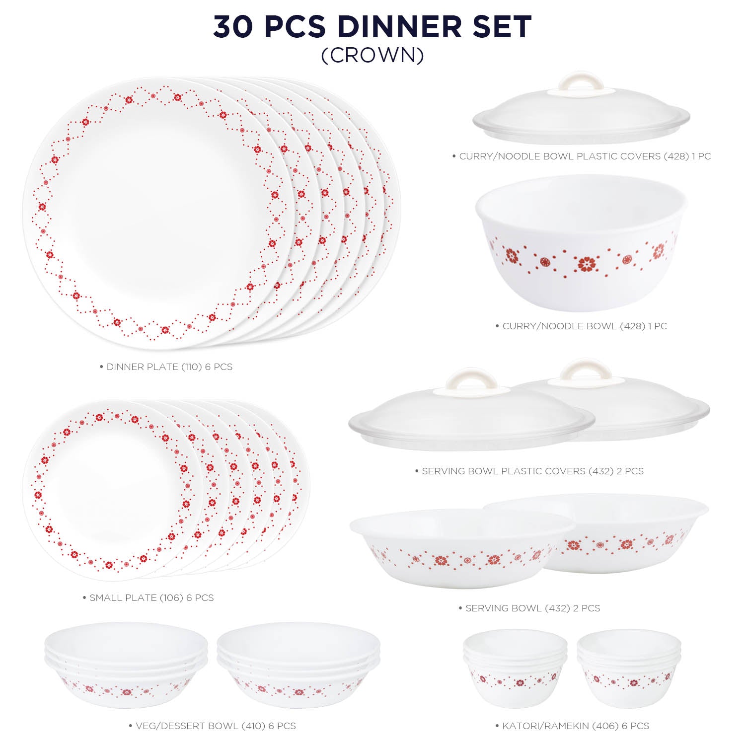 Corelle Livingware Round Crown 30 Pcs Dinner Set