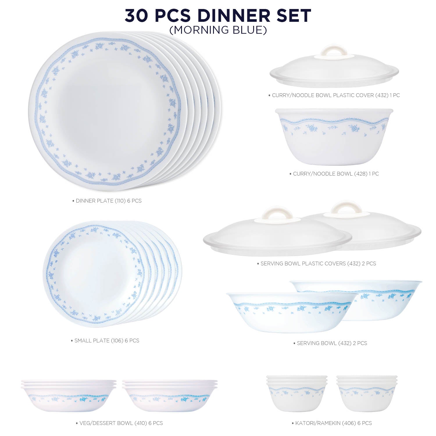 Corelle Livingware Round Morning Blue 30 Pcs Dinner Set - with Serving Bowl