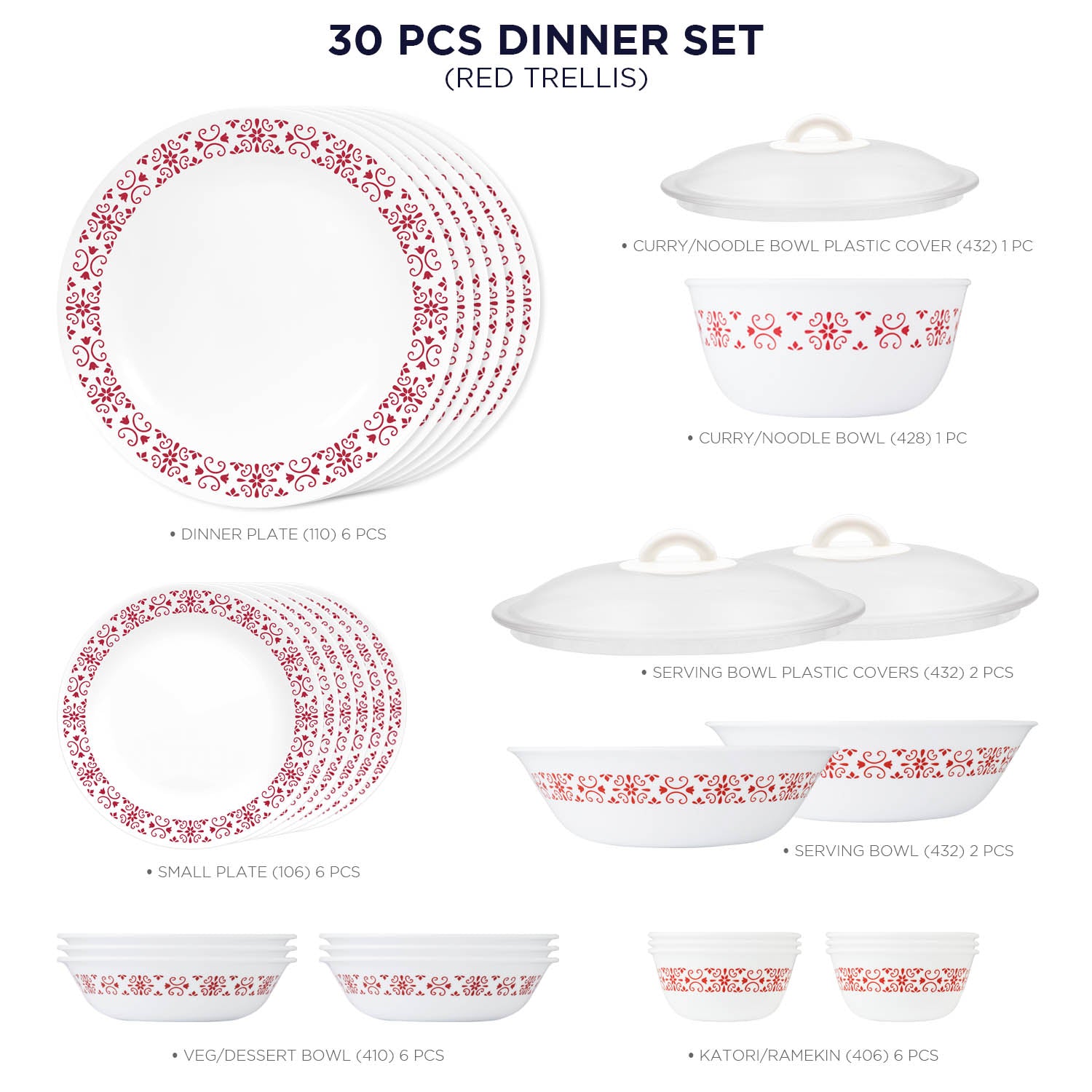 Corelle Livingware Round Red Trellis 30 Pcs Dinner Set