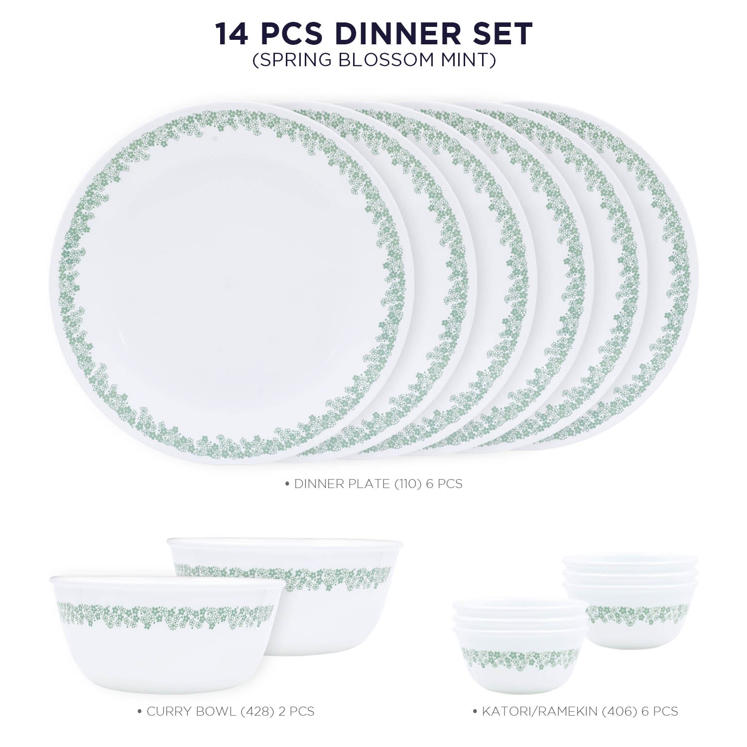 Corelle Livingware Round Spring Blossom Mint 14 Pcs Dinner Set