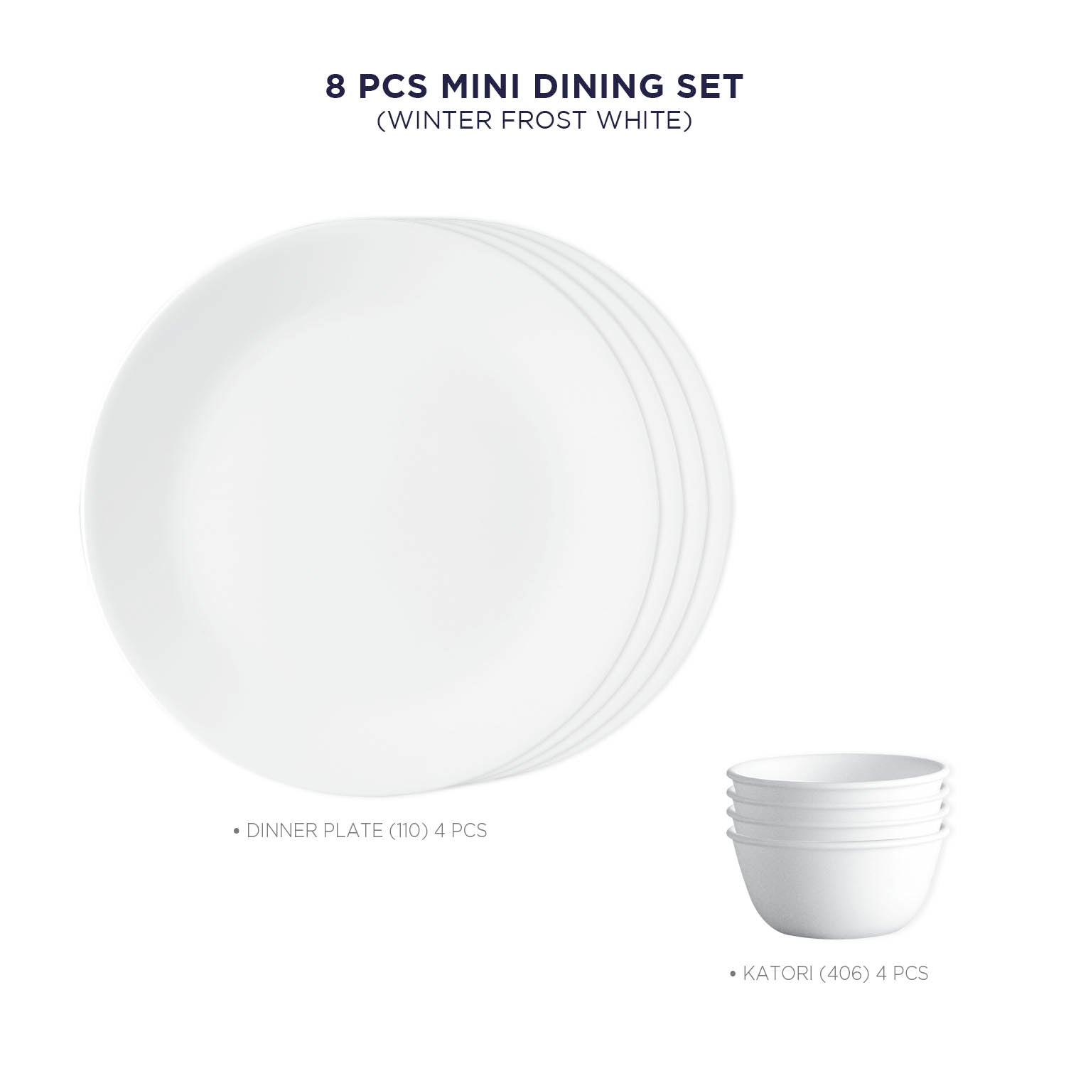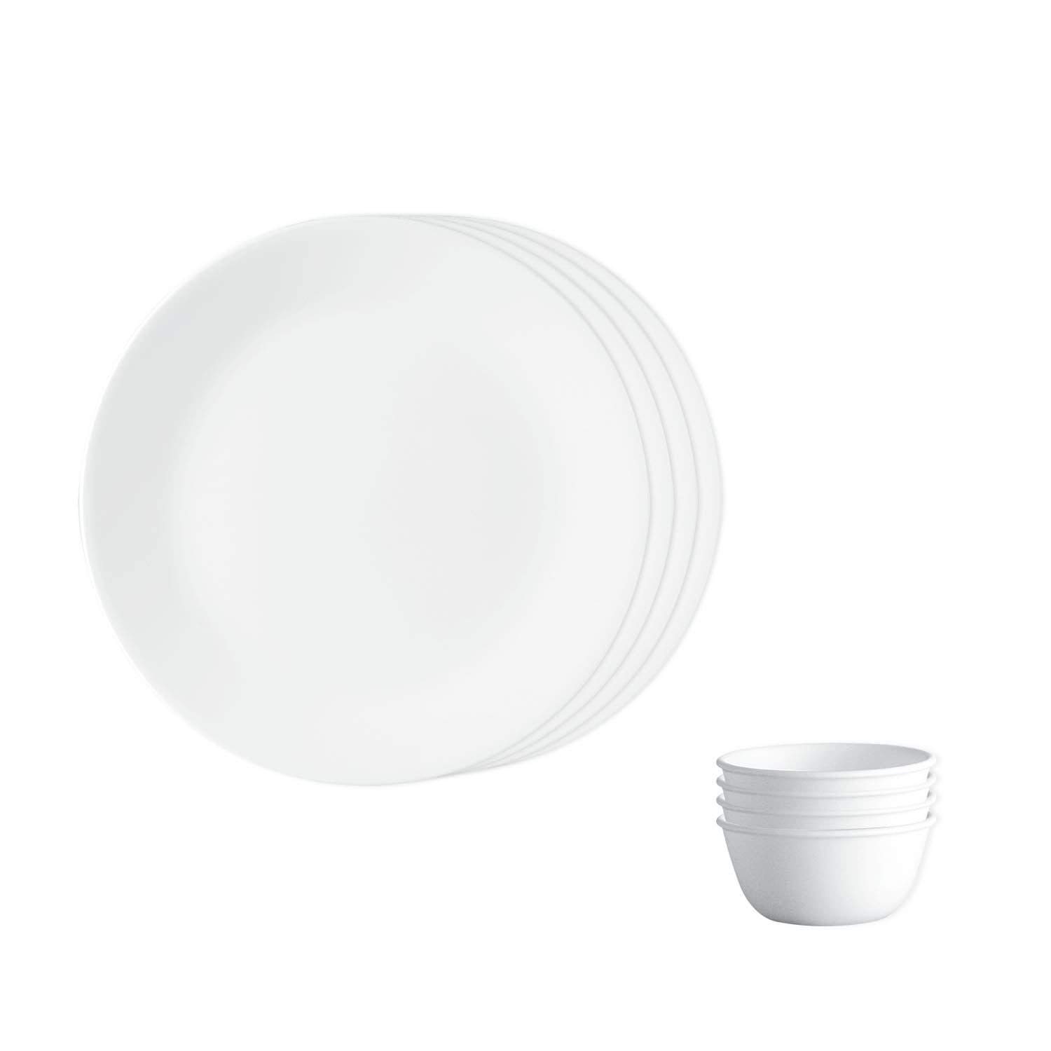 Corelle Livingware Winter Frost White 4 26cm Dinner Plate & 4 177ml Katori (Pack of 8)