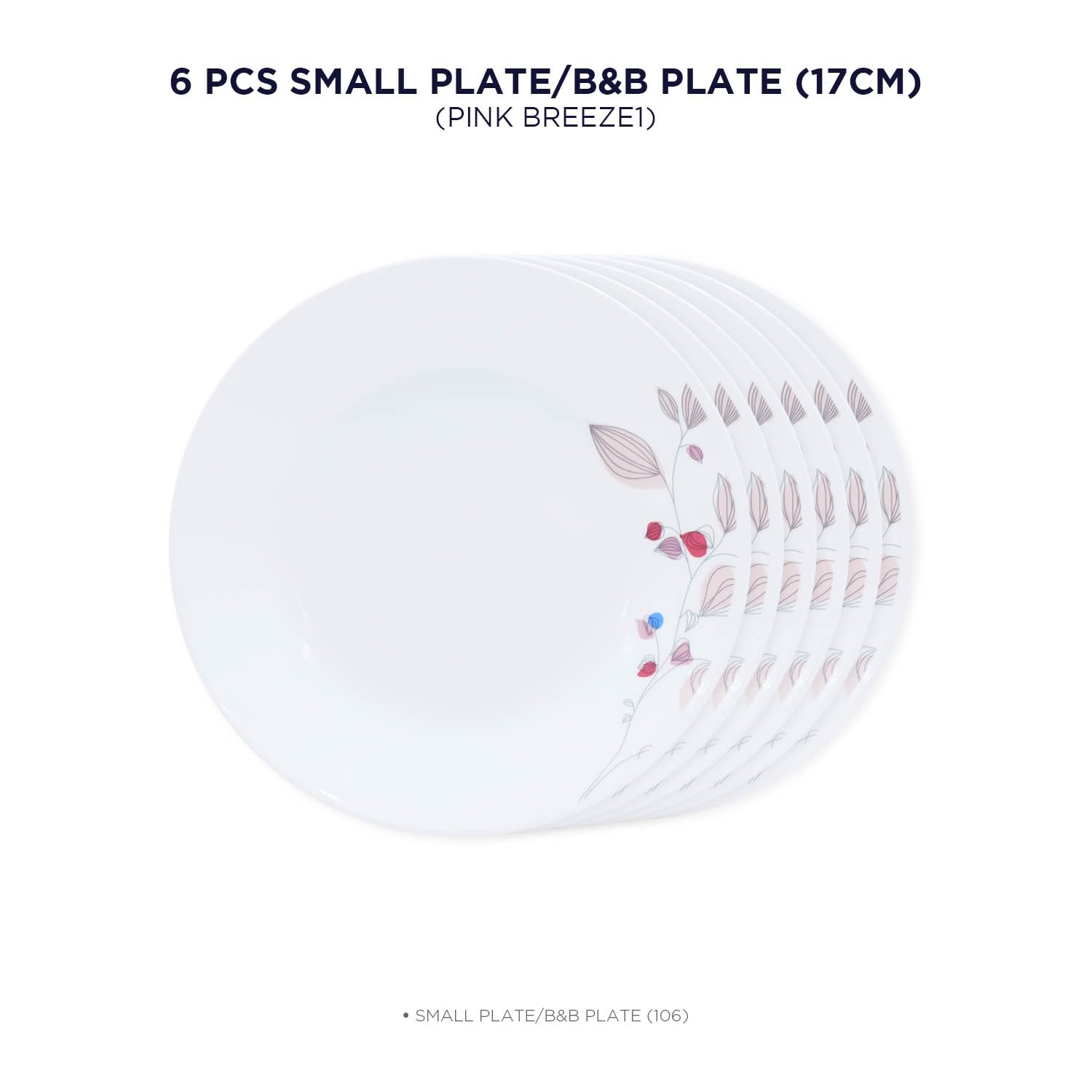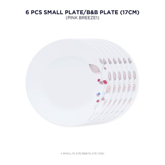 Corelle Pink Breeze1 17cm Small Plate/B&B Plate Pack Of 6 | For Family of 6 | Break & Chip Resistant | Lightweight & Durable | Microwave & Dishwasher Safe