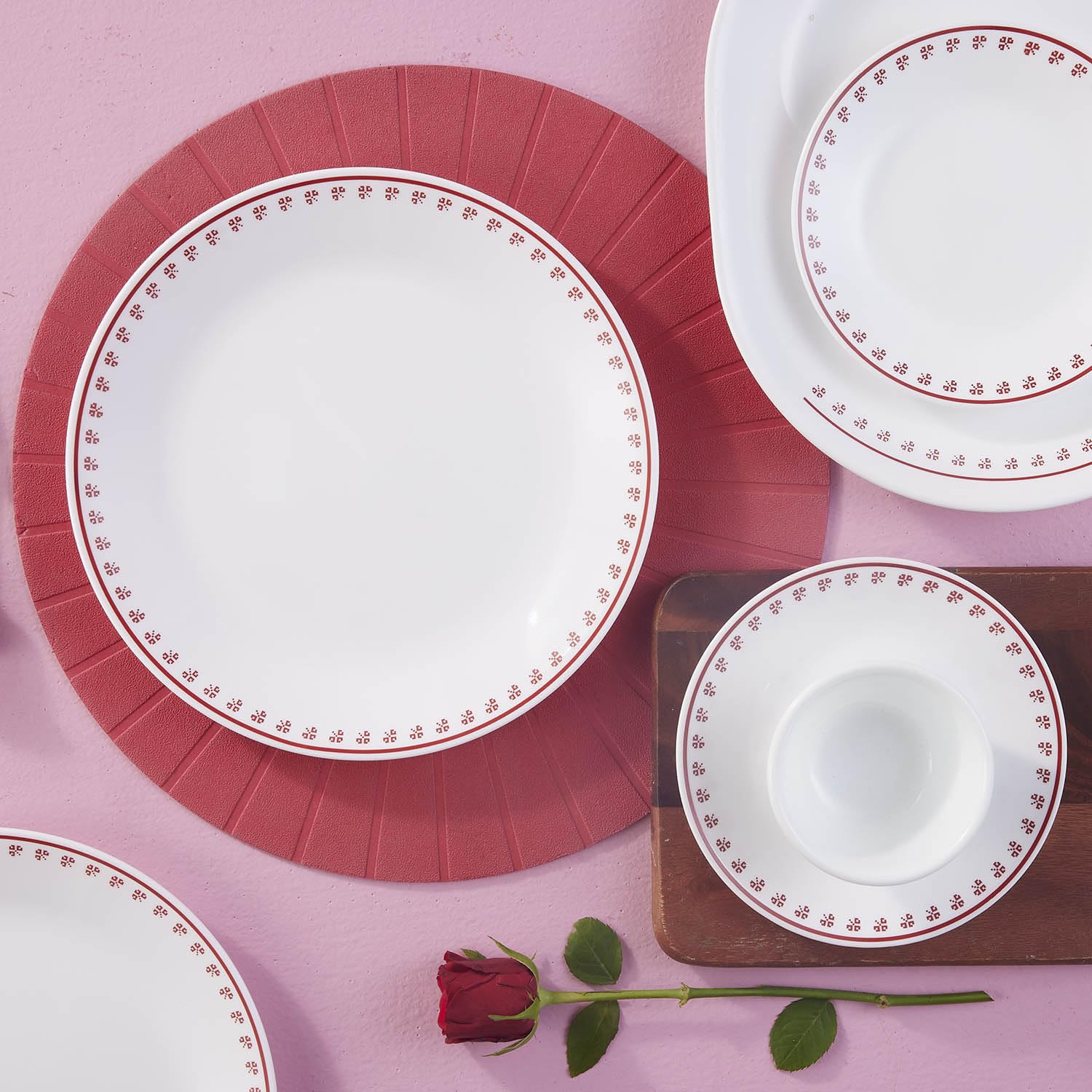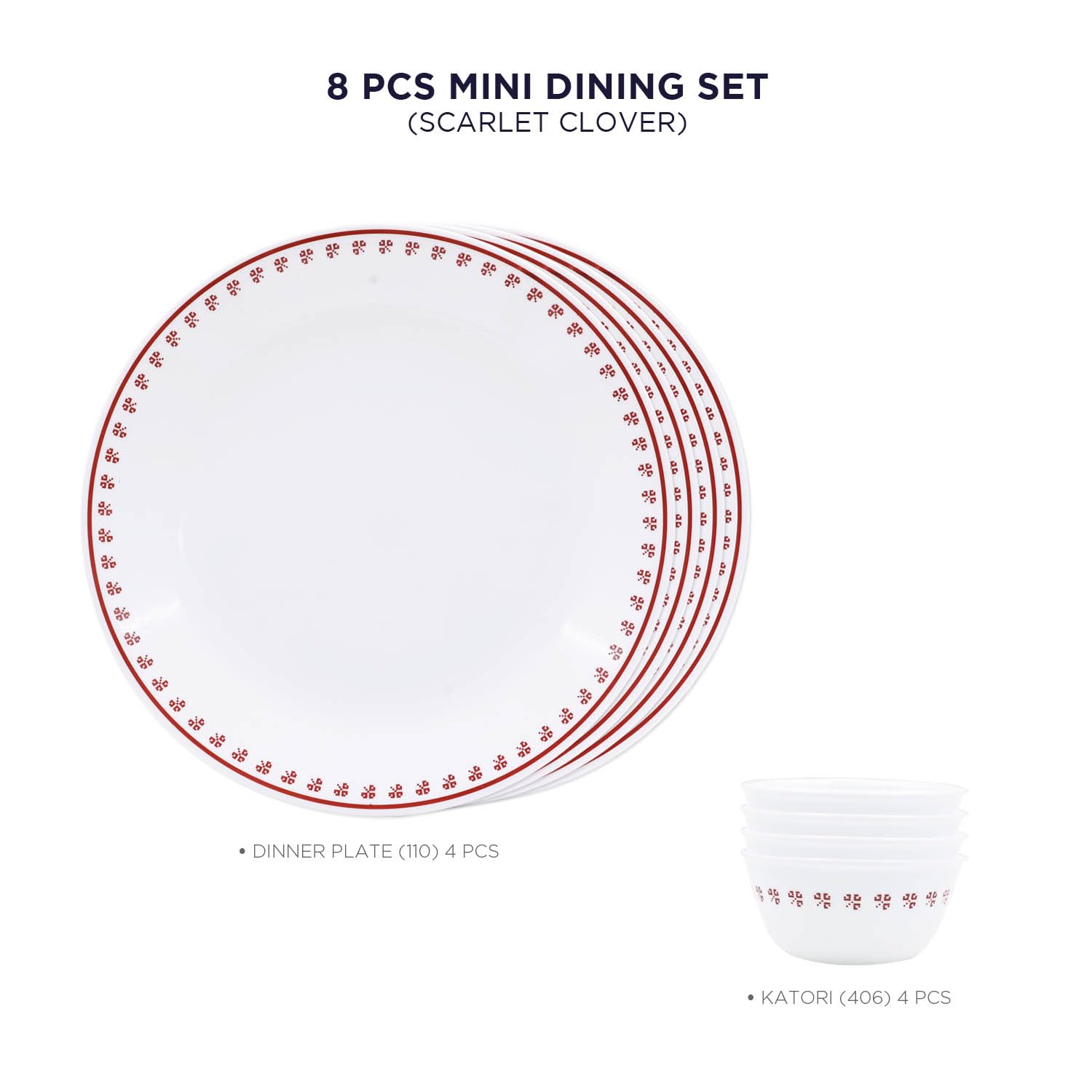 Corelle Scarlet Clover - 8 Pcs Mini Dining Set (K) | For Family of 4| Break & Chip Resistant | Lightweight & Durable | Microwave & Dishwasher Safe