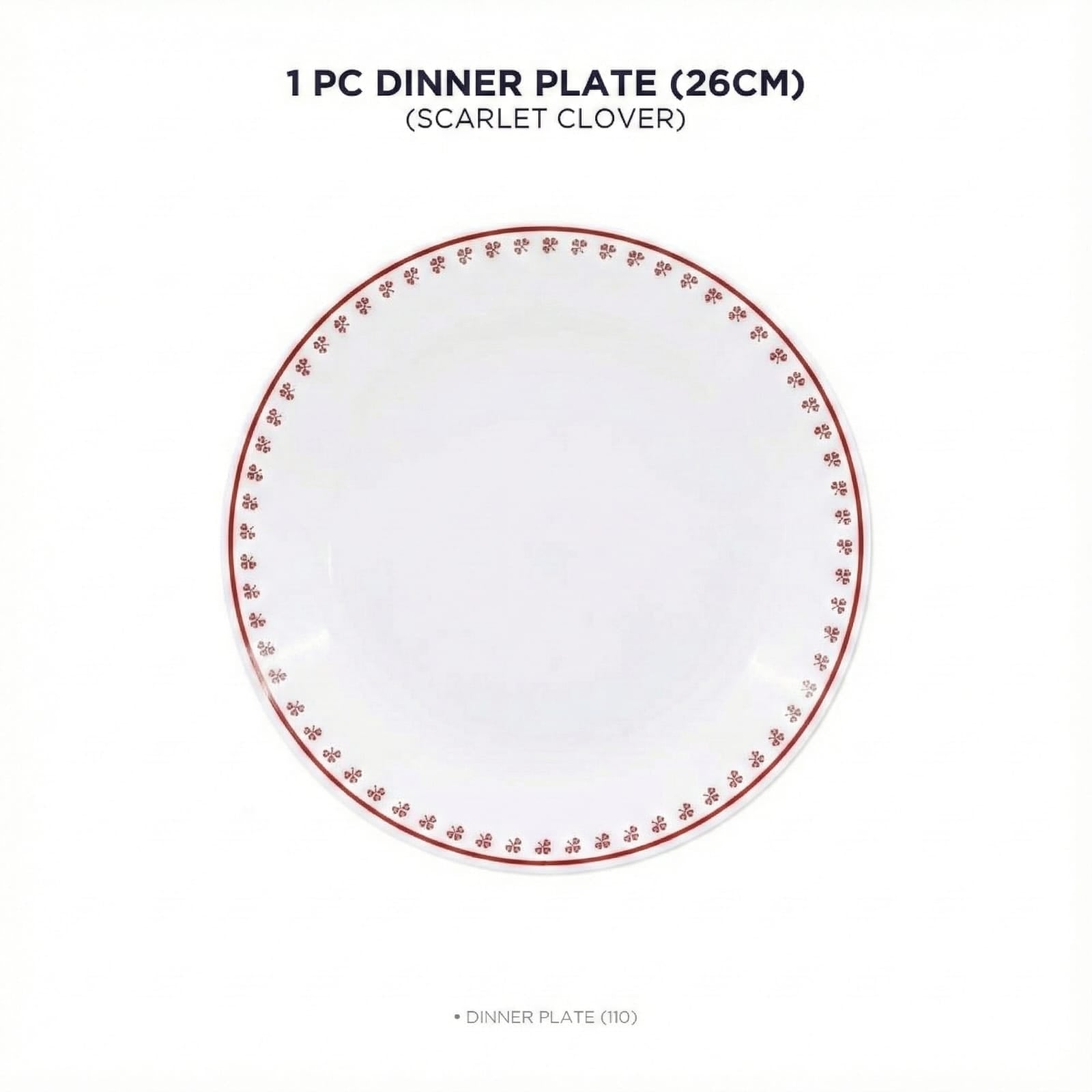 Corelle Scarlet Clover 26 cm Dinner Plate (Single PC) | Break & Chip Resistant Lightweight & Durable | Microwave & Dishwasher Safe