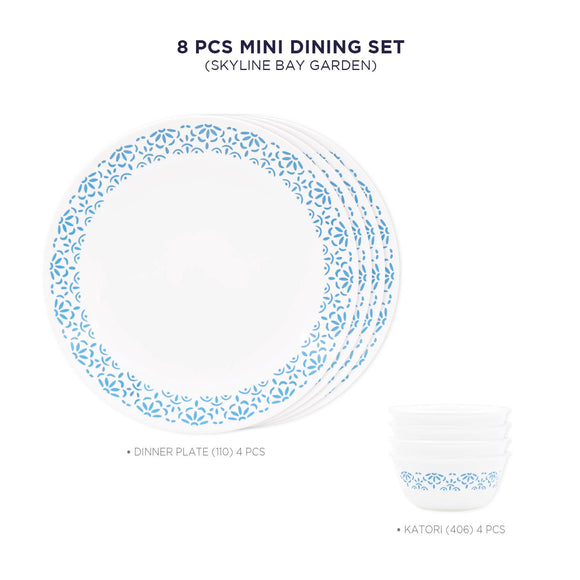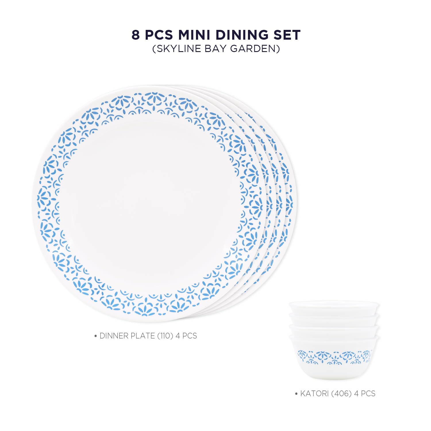 Corelle Skyline Bay Garden - 8 Pcs Mini Dining Set (K) | For Family of 4| Break & Chip Resistant | Lightweight & Durable | Microwave & Dishwasher Safe